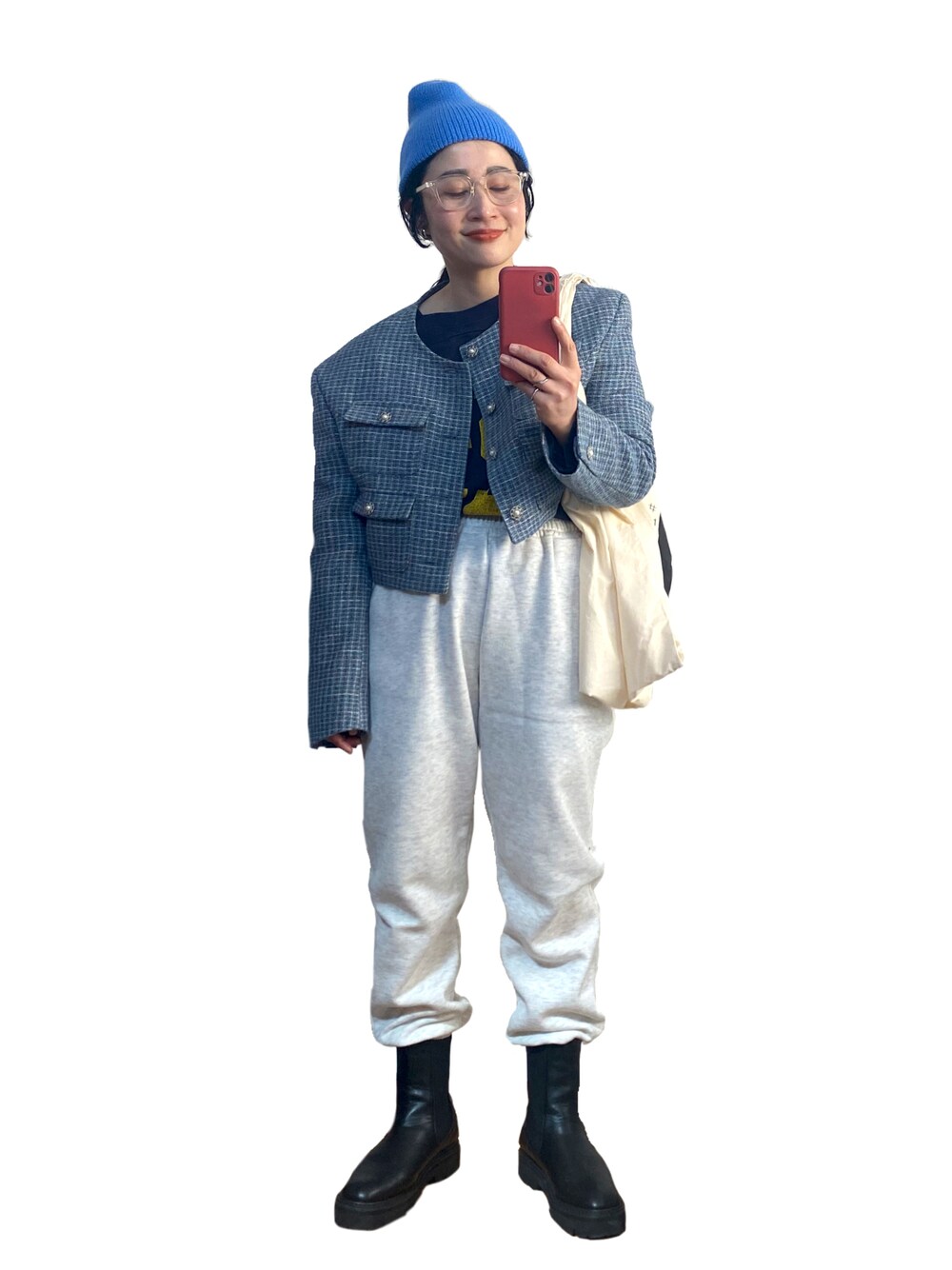 たかこのノーカラージャケット「TWEED JACKET ツイードジャケット」を使ったコーディネート