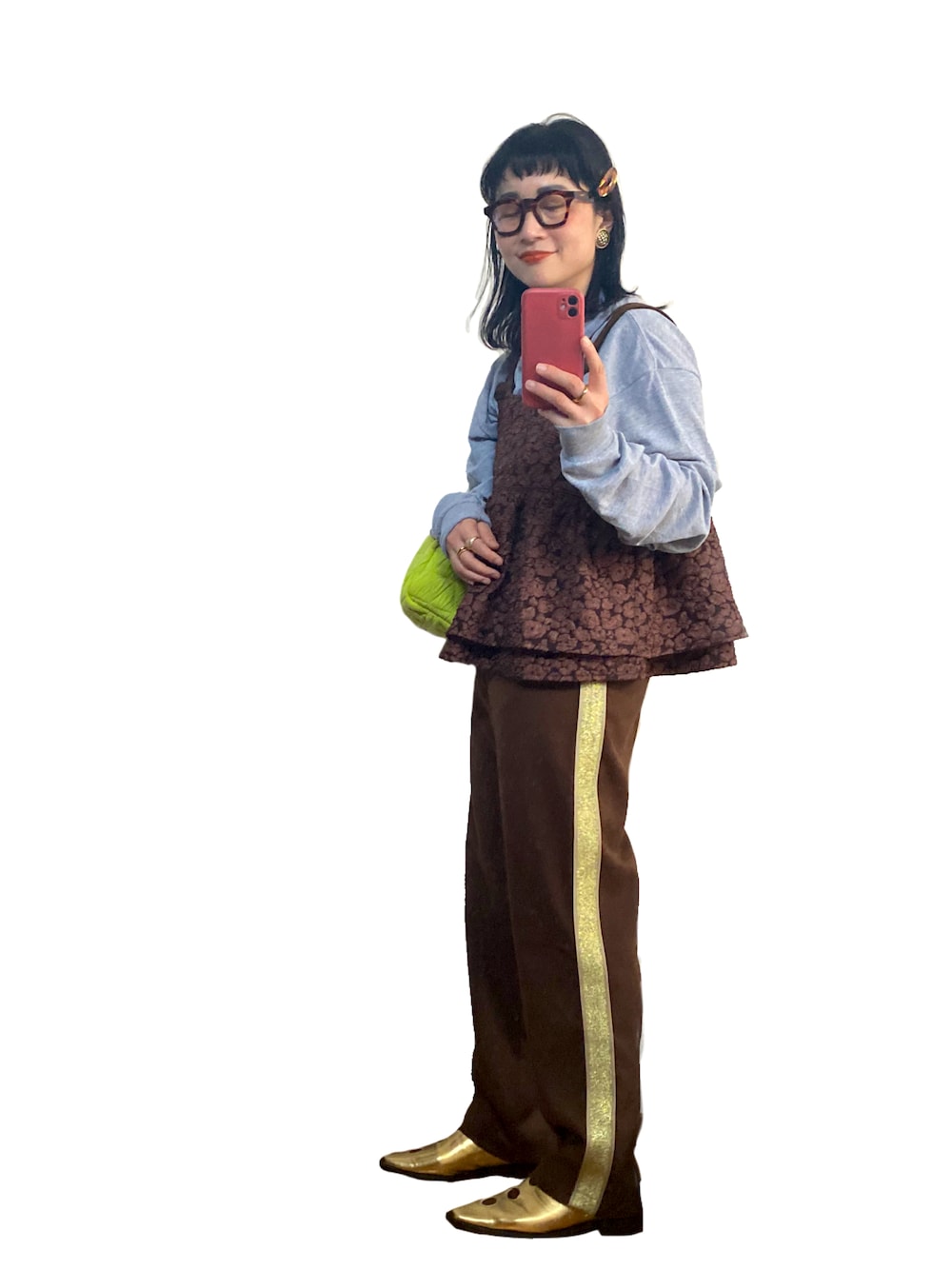 ポップアップの戦利品の新作たちとサンプルのバッグとで浮かれコーデ🫶