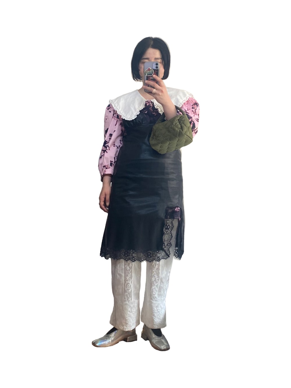 たかこのワンピース「フェイクレザーキャミソールドレス【SANSeLF】sanw23s012」を使ったコーディネート