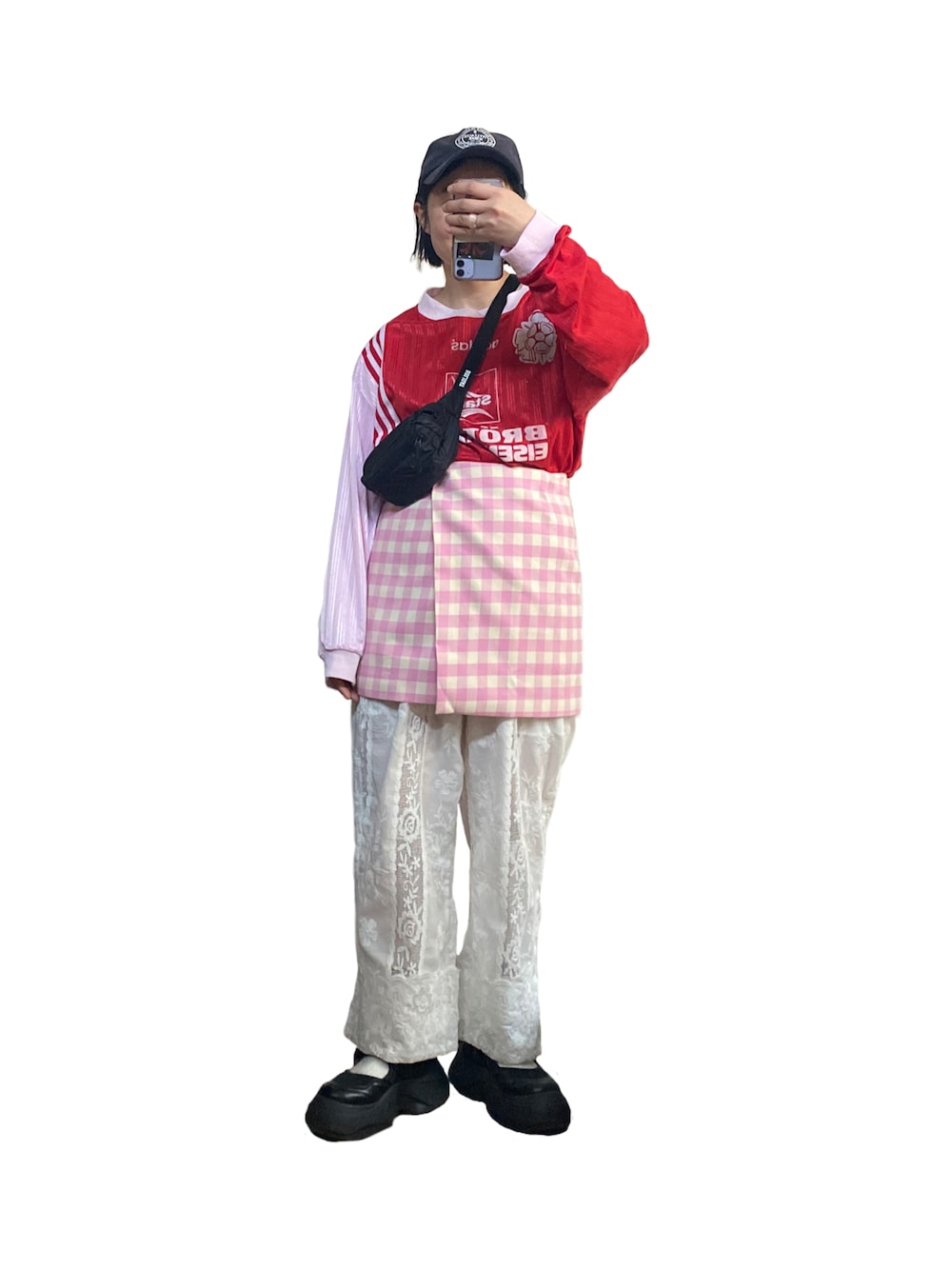 古着のサッカーシャツ💘 赤とピンクに長袖ってあんまないよねって🫶 スカートも可愛すぎかなってくらい可愛い💘💘