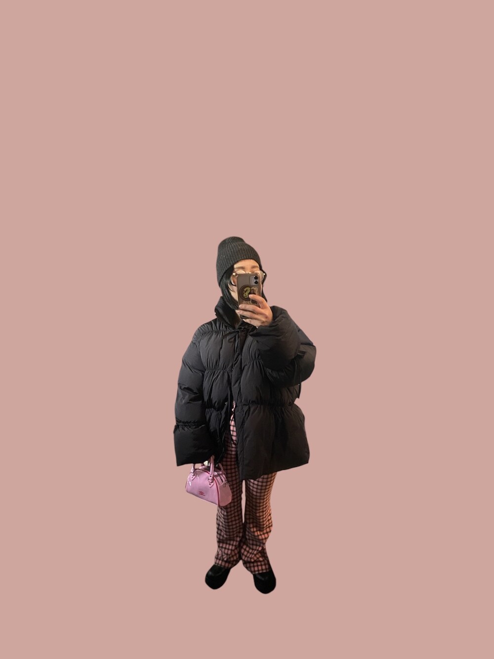 シンプル〜🩷🖤 何てことないコーデやけどアウターが可愛いから🖤