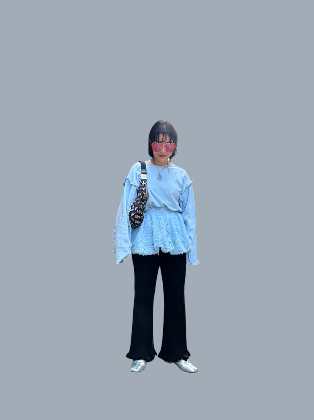 時間ない時とかぱっと着る服決めたらいっつもこんな感じ🥹 頼りっぱなしのミニスカ🩵 あんま見えてないけどバッグはtinyshopでげっとしたやつ🖤