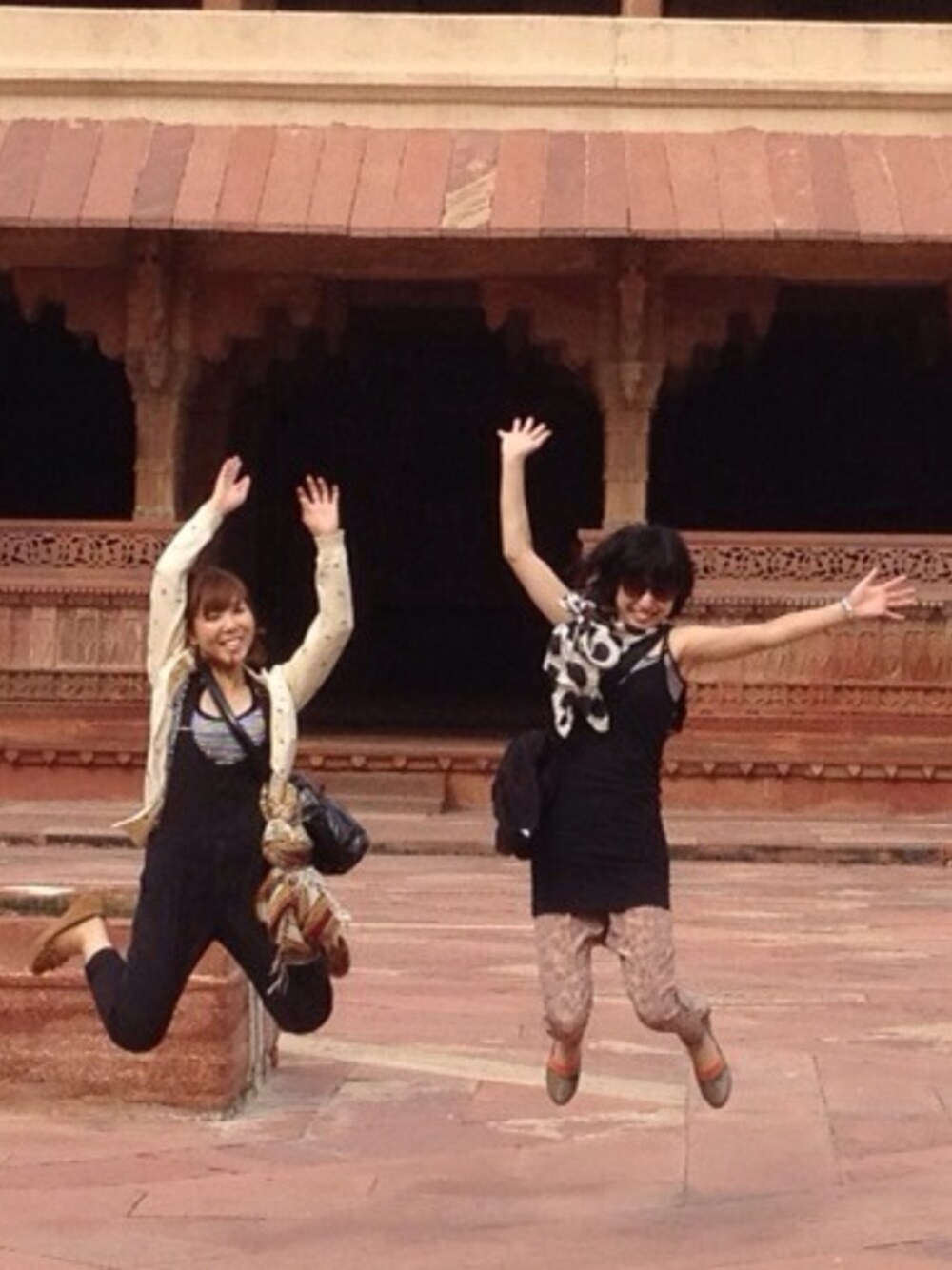 インドにて…ジャーンプ! 水玉スカーフ___古着 インナー___古着 パンツ___古着 靴___コキュ