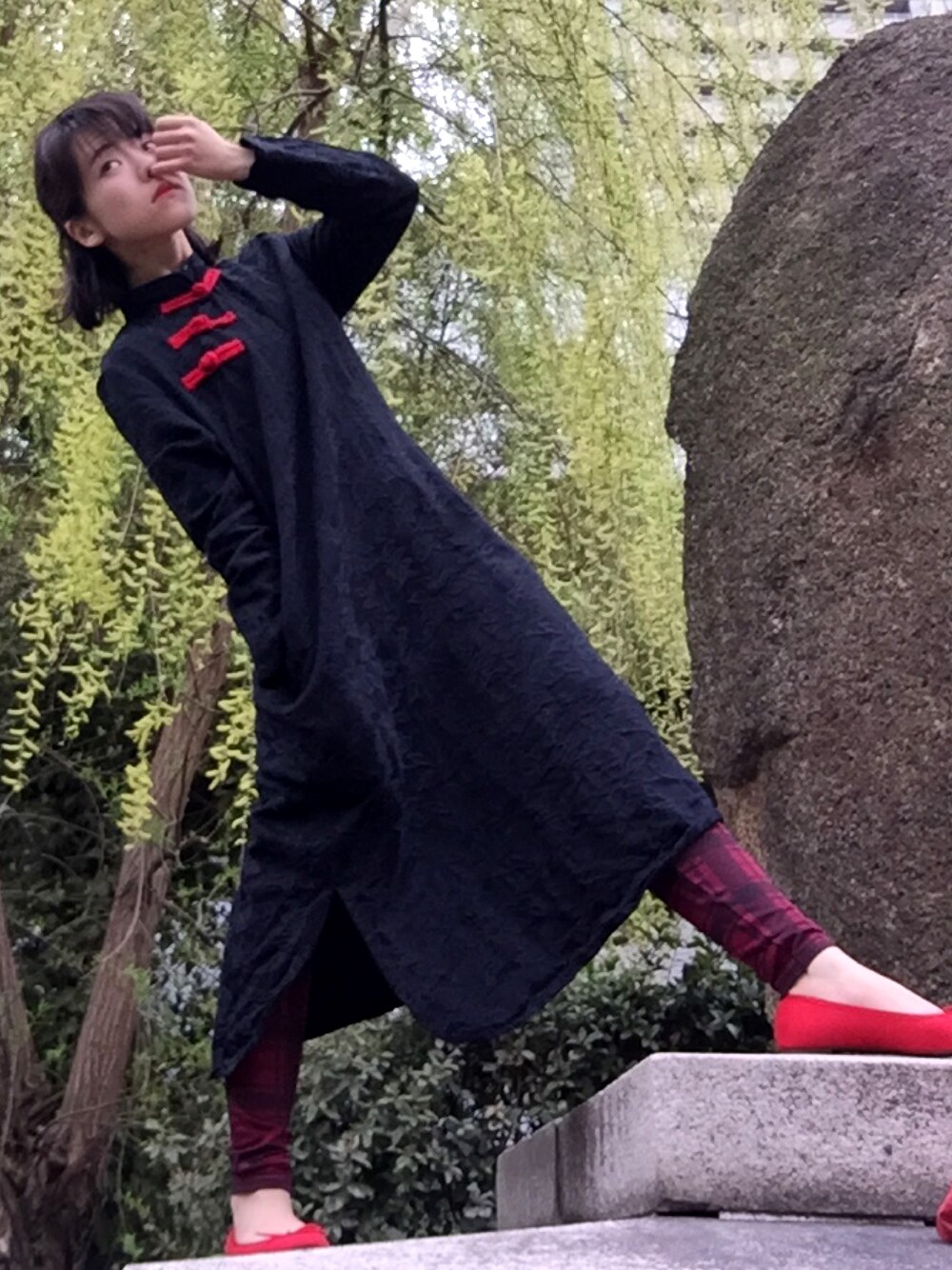 チャイナといえばピッタリ、ボディラインが出るイメージですがXXLサイズでゆったり着て普段着使いにしてみました。 とくだん好きな訳ではないんですが、赤色の小物がやたら増えていく謎。 周りの人が赤のイメージがあると言ってよくプレゼントしてくれます。 ちなみに私が好きな色は水色なんですが、過去にアップしたコーディネートに水色がほぼ無い!笑