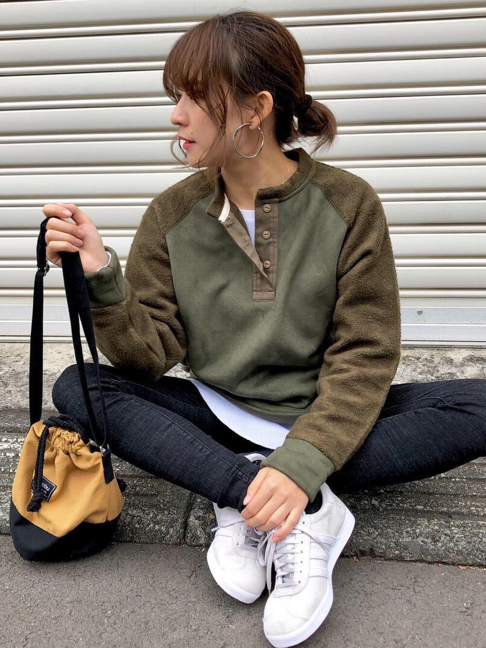 ✔︎ヘンリーネックスエード×ボアプルオーバー/カーキ ¥5900 Instagramからもご注文頂けます