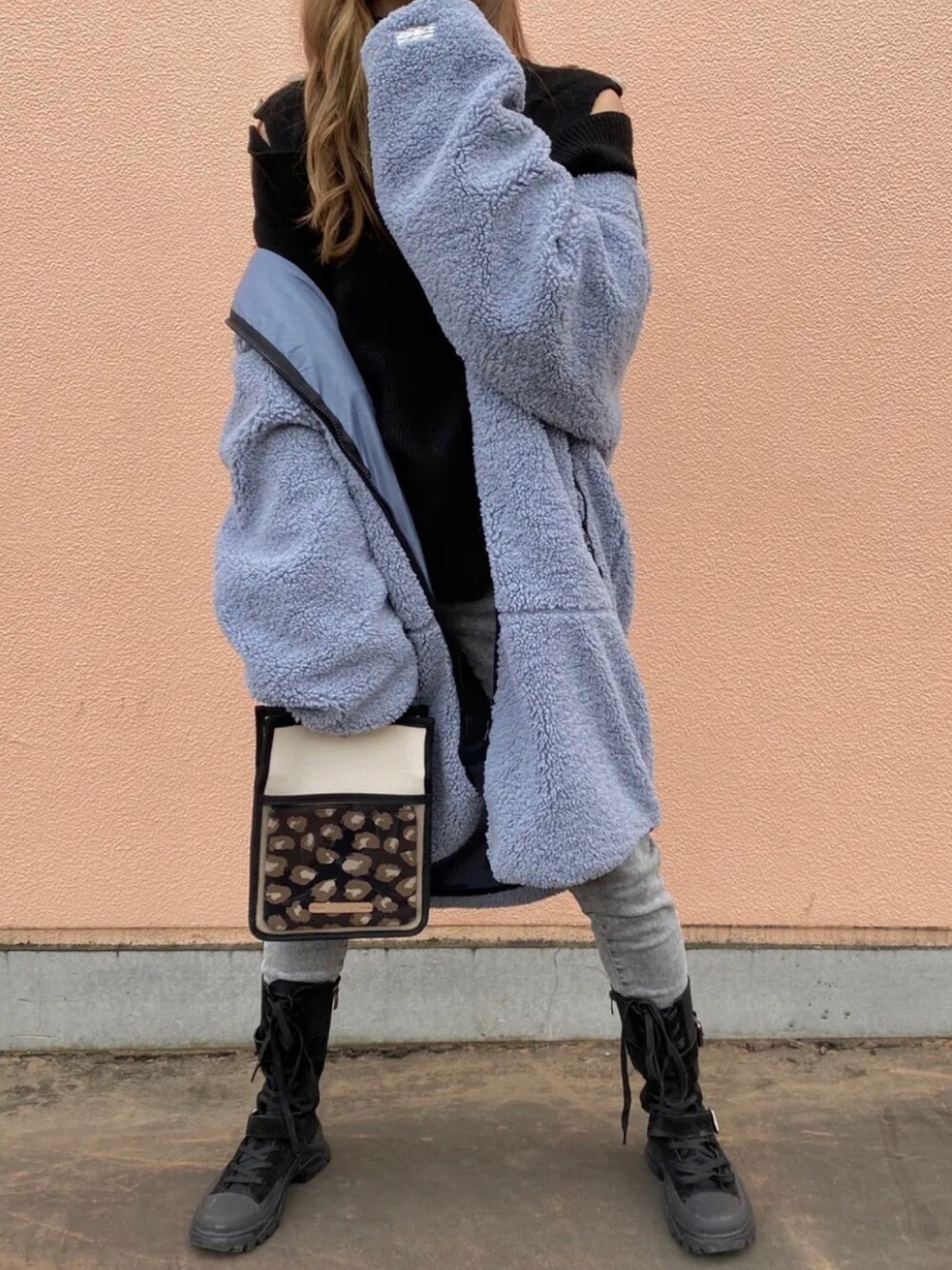 プードル🐩みたいなモコモコパイピングボアロングコート🧥 くすみブルー🫐も可愛い🥺
