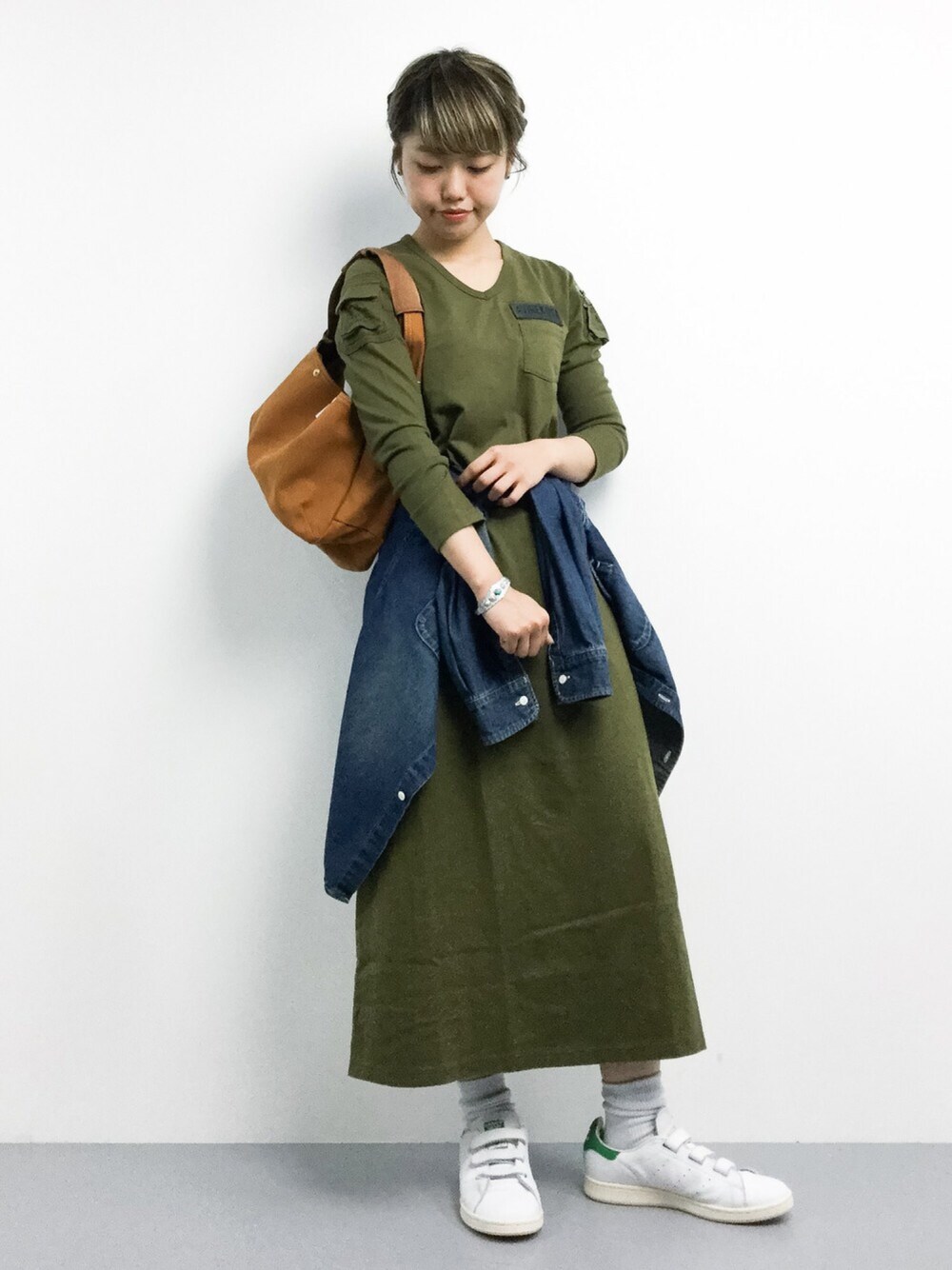 konabeのワンピース「【In Red掲載アイテム】avirex/ アヴィレックス / L/S V-NECK FATIGUE ONE PIECE/ Vネック ファティーグ ワンピース」を使ったコーディネート