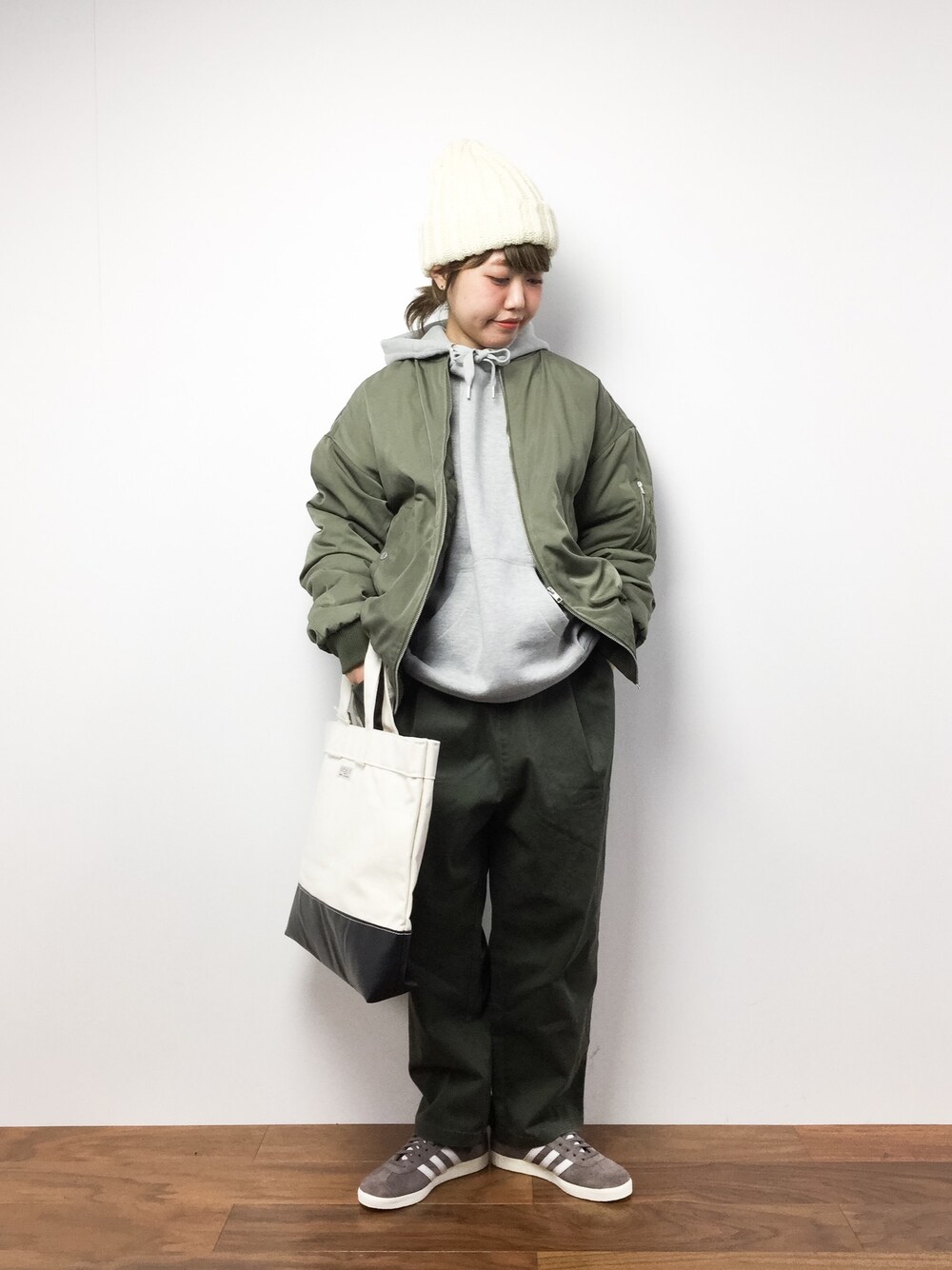 カーキでメンズライクに。 穿いているカーキパンツはniko and...のもので、メンズライクなスタイルにもってこいのアイテムです!現在51%オフで¥3,132と大変お買い得になっていますので、是非ZOZOTOWNでチェックしてみてください。