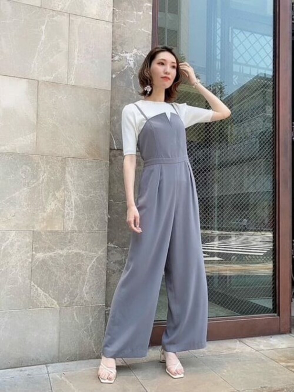 落ち感のある素材が今っぽい♡大人でも着やすいサロペットです! 高めのウエスト位置なので、ベーシックなリブニットと合わせると 子供っぽくもならずスッキリとした印象に見せてくれます! アジャスターで長さ調節できるのも嬉しいポイント◎
