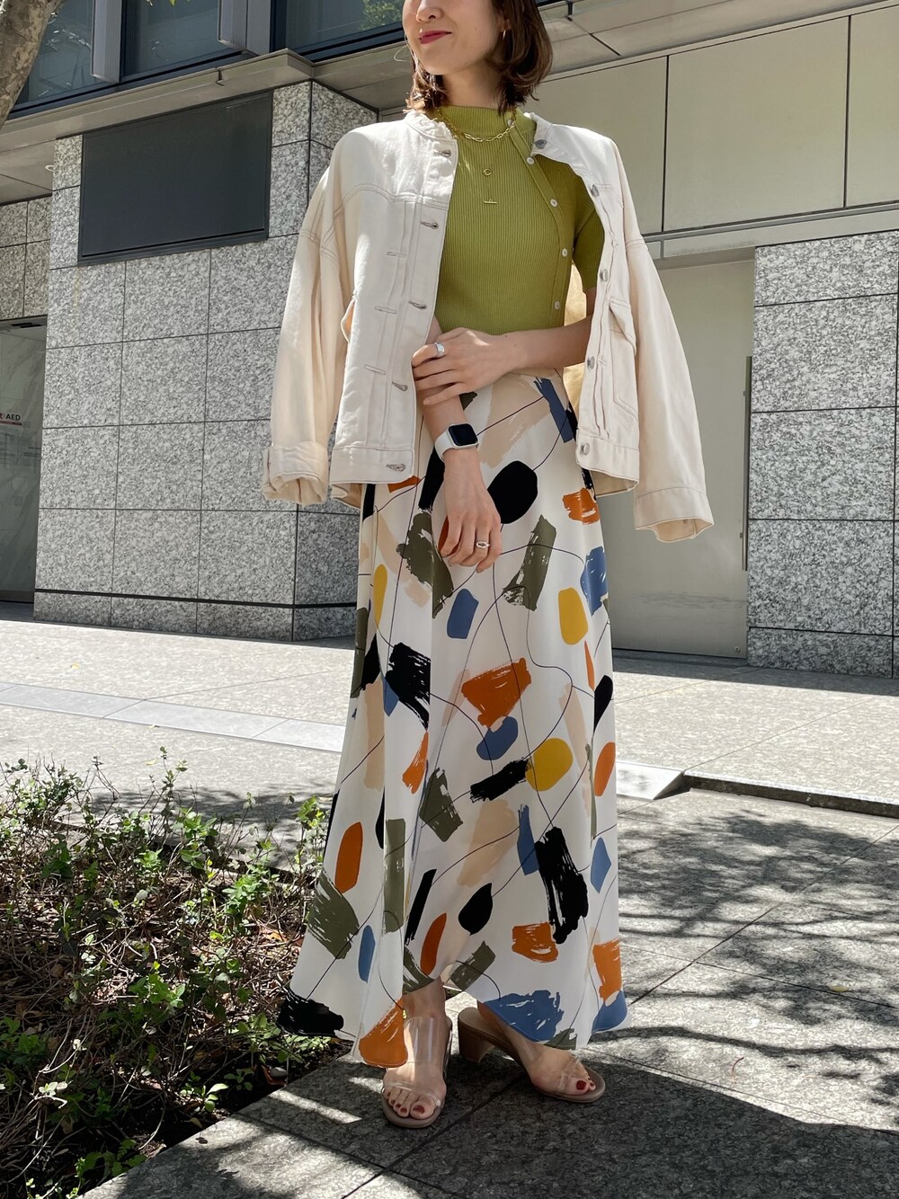 Shiiiのスカート「ペイント / 幾何柄 フレアスカート」を使ったコーディネート