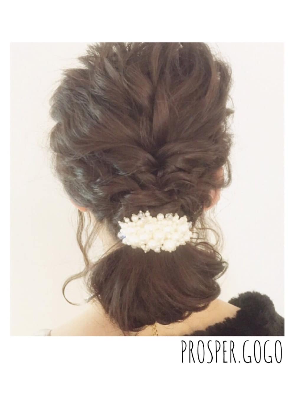今日のお客様×ボブアレンジ♡ 極太フィッシュボーンを使った、ひとつ結びアレンジです。襟足が5㎝以上あれば出来ますよ〜♪*・゚ ①バックはフィッシュボーンをしてひとつ結びに。 ②両サイドはツイストして、後ろでピン固定したら完成です♡