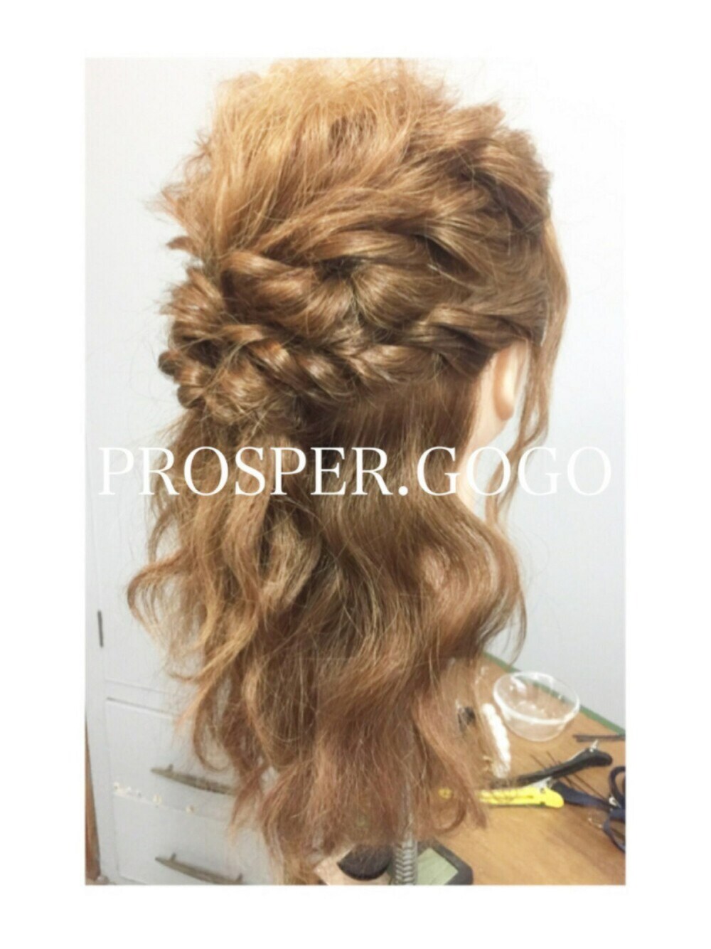 サイドツイスト編み二段のハーフアップアレンジ♪*・゚ ①両サイドを残して、トップを結びます。 ②サイドを上下に分け、上段の方からツイスト編みします。 ③下段の左サイドも同様にツイスト編みします。 ④右サイドも同様にして、ピンで固定します。 ⑤バランスを整えたら完成です♡