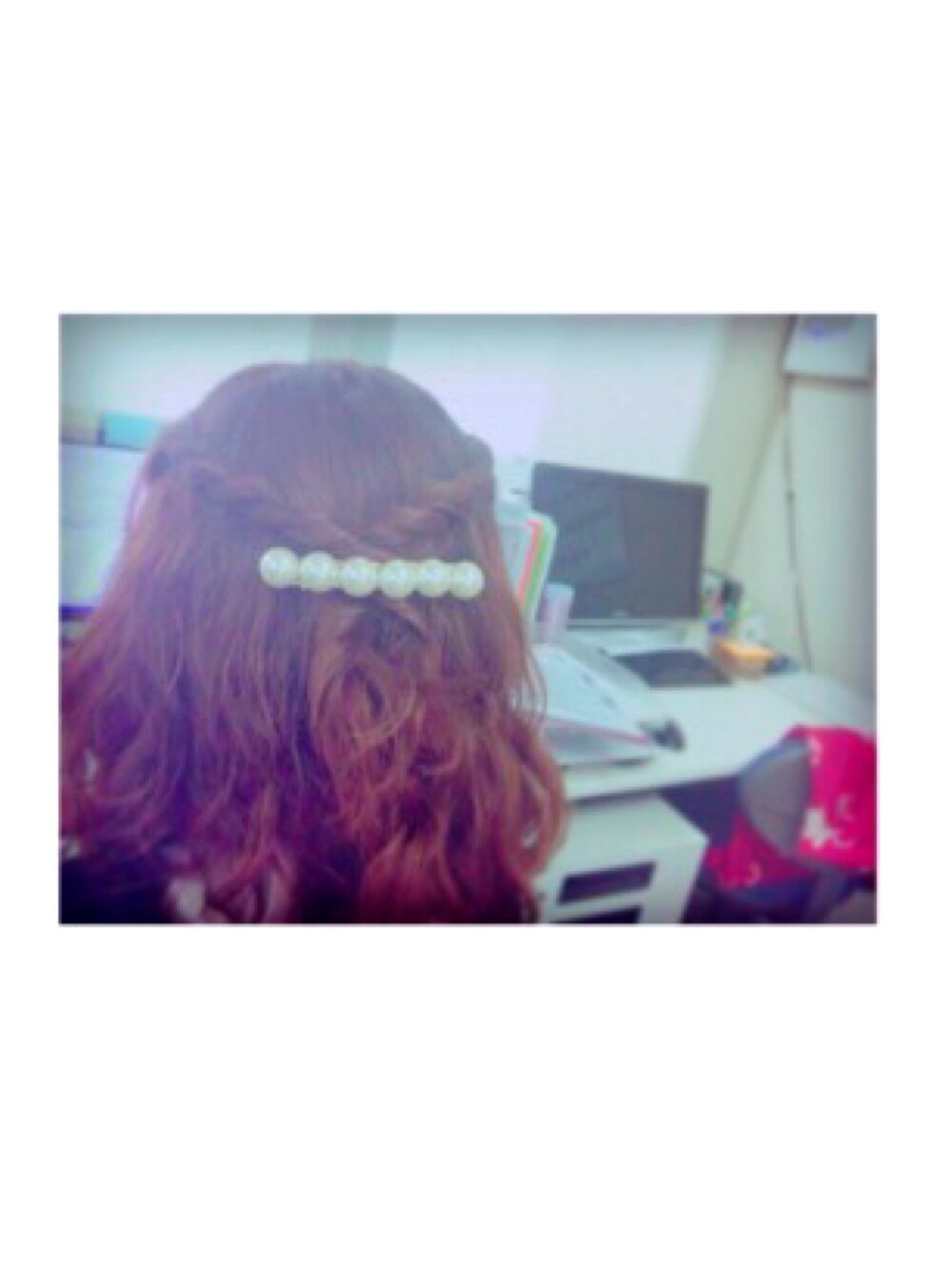 パーマをかけたので巻く手間が省けて楽チン! 耳上の髪をくるくるねじり後ろまで持っていきバレッタでとめただけです〜 大きめのパールのバレッタが上品でかわいい✨