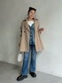 トレンチはMサイズ、 ビスチェもMサイズ、 デニムはSサイズ着用