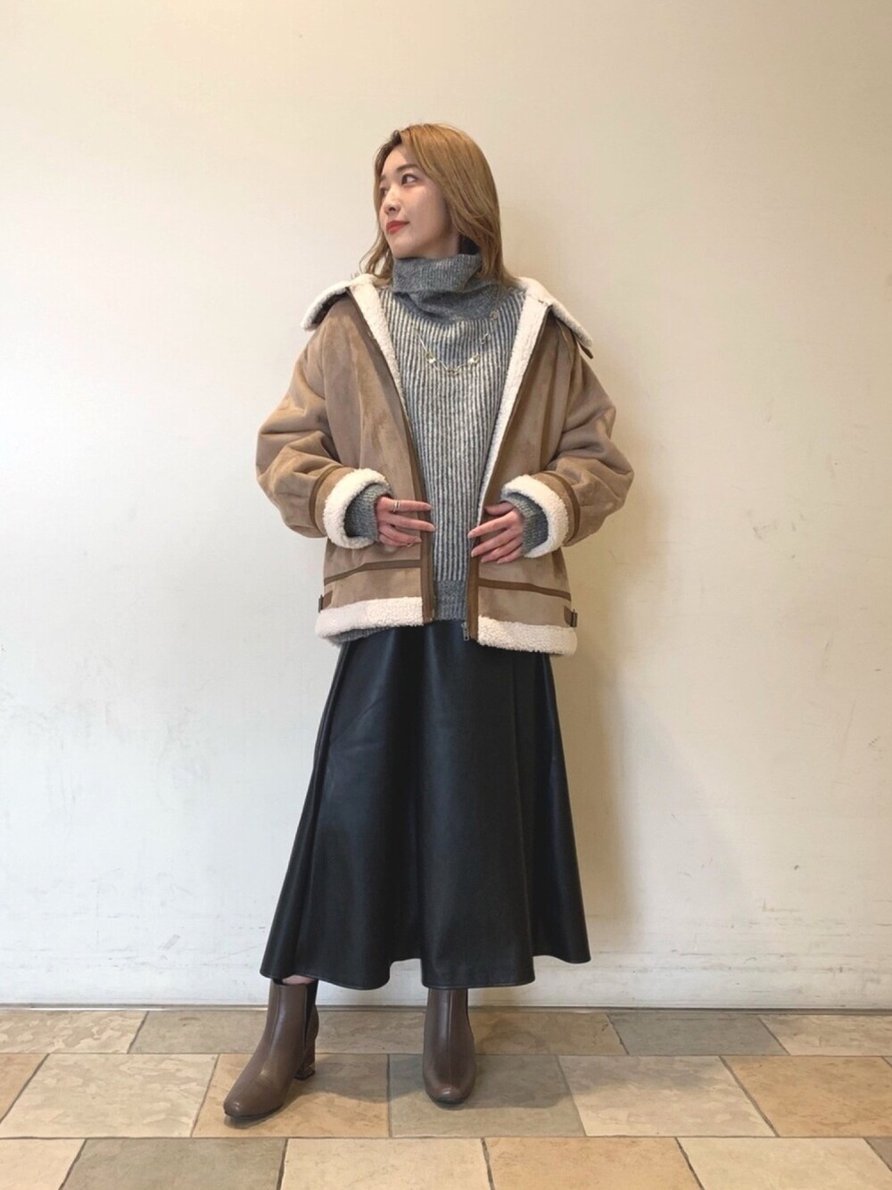 ムートンボアジャケットとレザースカートで トレンドコーデ☺︎ ジャケットは程よくゆったり羽織れて シルエットがキレイです✨ Instagram⇨@prs_suzu