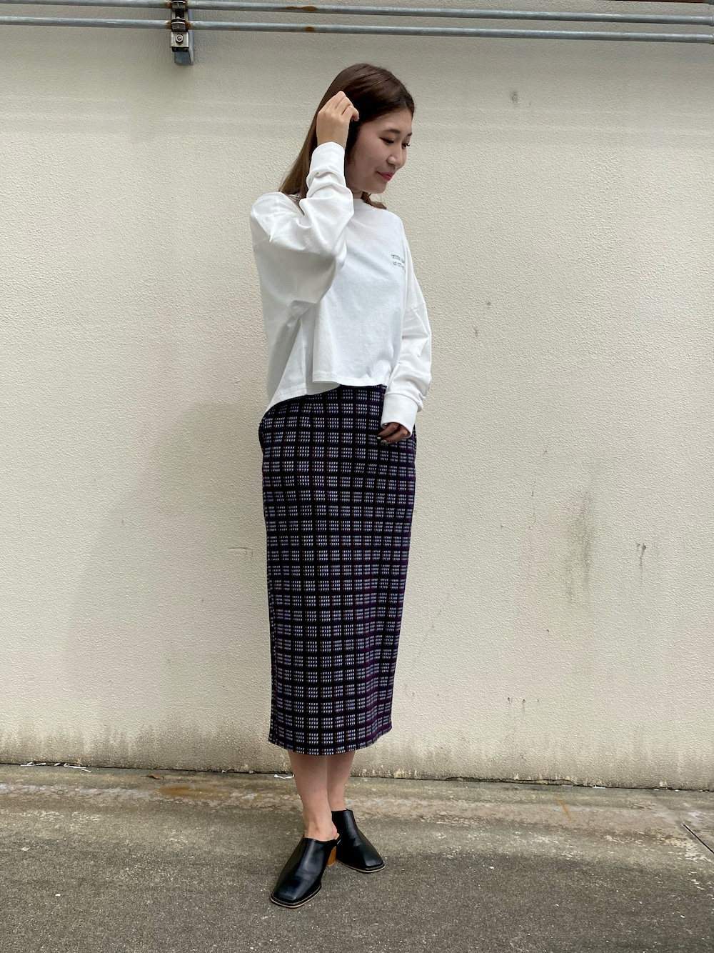 カジュアルなコーデ◎ 丈感短めトップスにハイウエストのスカート合わせました◎
