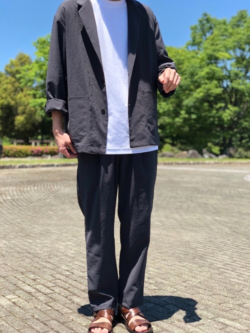 LAMONDのセットアップ。 超軽量ポリを使っているため、軽くて涼しいのでもうちょい先まで着れます✌️✌️ 着飾らずチラッとお出かけするのに丁度いいセットアップですね😙