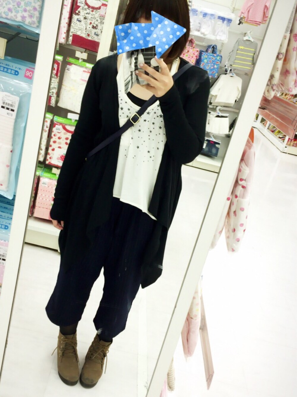 パンツは紺のチェック なんだけど写真には うつらなかった( ´-` ) セールで衝動買いしたパンツ..
