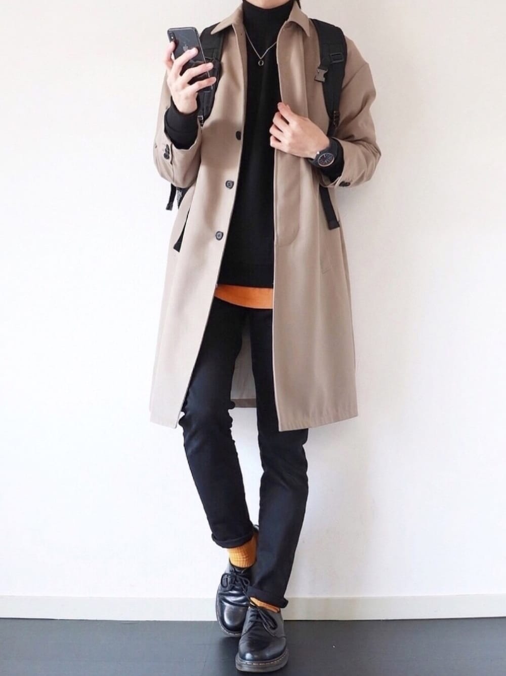 おはようございます🐶 ZOZOデニム信者のぴたんです🐶 【ZOZOデニム新色のブラック購入しました!】 僕が購入したサイズ(ZOZOスーツで計測) ウエスト73cm(最適) ヒップ88cm(最適から-3cm) 総丈101cm(最適から+6cm) 2回ロールアップで靴下を見せたかったので 丈はかなり伸ばしました! また、ヒップを-3cmする事でよりジャストサイズで 履くことが出来シルエットもきれいで大満足です! ただ、ウエストが少しキツイかなと思いました! ヒートテックタイツを中に履くとなかなかキツイです😂 ブラックも日記に詳しくまとめといたので サイズ感とか分からない方是非参考にして見てください! 日記へはプロフィールから飛べます🚀 【コーデ 】 ステンカラーコートを使った秋冬コーデ です✨ ステンカラーコートとタートルネックの相性抜群です! こちらの黒のタートルネックは 最近ZOZOTOWNにオープンした 韓国ブランドセレクトショップのKONVINIさんのものです! 韓国ファッションかなり盛り上がってますよね🇰🇷 日本ではあまり見ないアイテムが沢山あるので 気になった方は是非チェックしてみて下さい🐶 KONVINI ZOZOTOWN URL →http://zozo.jp/shop/konvini/ 【コーデのポイント】 ①差し色で黄色のレイヤードと靴下を使いました🐶 ②コーデの雰囲気に時計も合わせる🕰 【着用サイズ】173cm55kg 🐶コート S 🐱タートル M 🐭インナー XL(Lの方がレイヤードがきれいに出来そうです) 🐹パンツ Free 【その他SNS】 📸Instagram フォロワー19,000人突破!! コーデのテーマはデート服❤️ 「ぴたん」で検索してくださったら出てきます! 📝ブログも始めました!! 7か月でWEAR・Instagram共にフォロワー数1万人達成した 僕の最新の加工方法公開中です✨ 🕊Twitter→pitanWEAR 何気に今一番力入れてるSNS🤭 WEAR・Instagramが伸び悩んでる人 何がヒントが手に入るかもですよ😎 プロフィールの外部リンクから簡単に飛べます!