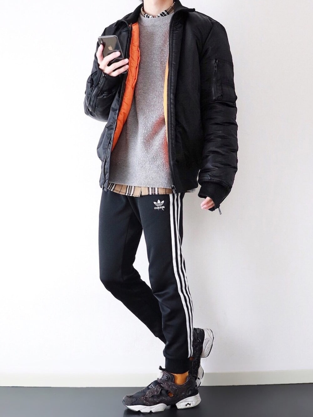 歯磨きする時大体えずく、どうもぴたんです🤭 老化とともに朝とか歯磨きする時えずくんですよね、、笑 ここ最近の真剣な悩みです🤮 とまあ、そんなことはさておき、、、 今日は久しぶりにadidasのトラックパンツを履いました! 機能性抜群で私服だけでなく寝巻きにも使ってます😬笑 ストリート系にしたかったのでアウターは 内側がオレンジで可愛いMA1です!! オレンジに合わせてニットの下には ベージュのチェックシャツ 靴下も似たような色を使いコーデに統一感を出しました✨ 靴は安定のポンプ!! adidasのスーパースターとかでもカッコよく決まると思います✨ 少しでも参考になれば幸いです!! 【着用サイズ】 🐘MA-1 M 🐠ニット L 🦞シャツ M 🐊パンツ S 【その他SNS】 📸Instagram フォロワー21,000人突破!! 「ぴたん」で検索してくださったら出てきます! 📝Note 7ヶ月でインスタグラムのフォロワー2万人達成したノウハウについて書きました!! 🕊Twitter→pitanWEAR 何気に最近1番力入れてます✨ プロフィールの外部リンクから簡単に飛べますので 是非ご利用下さいませ😊