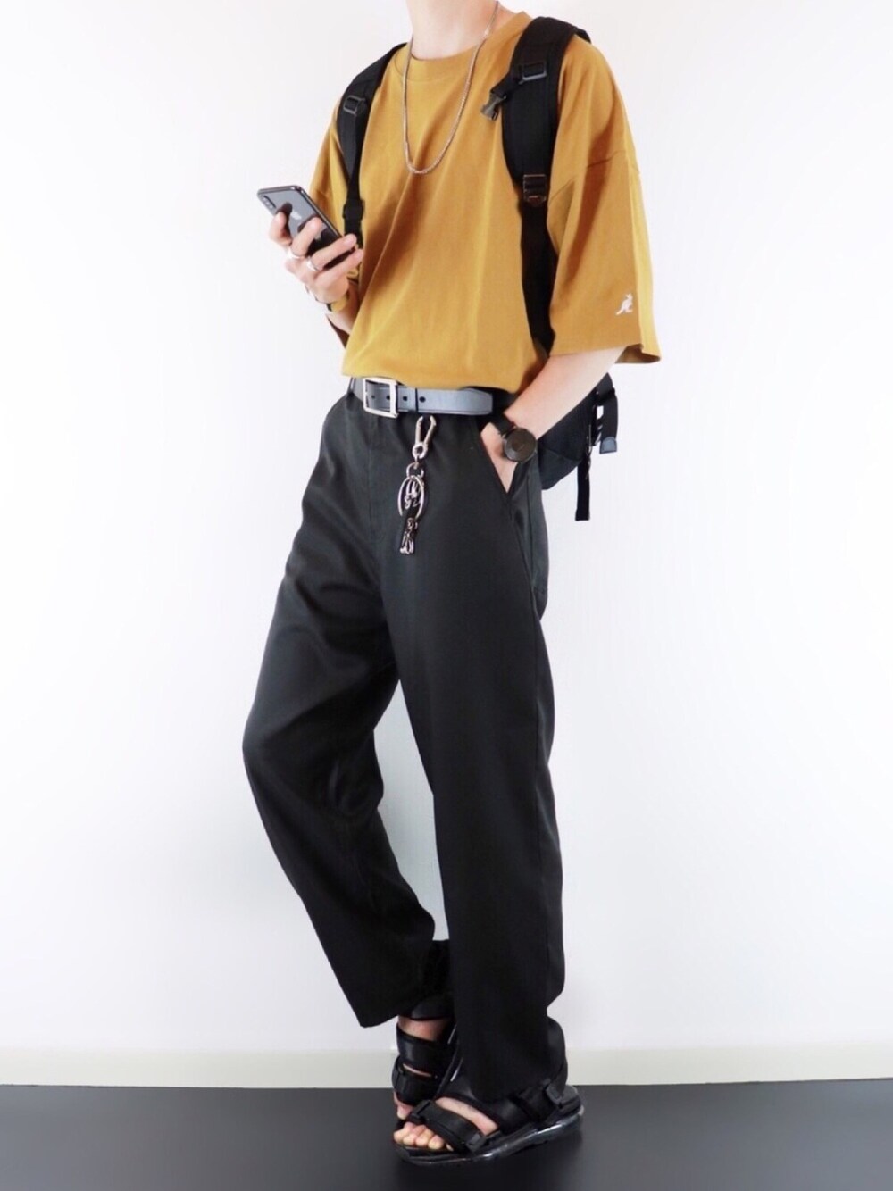 いつも見て下さりありがとうございます😊 バスクマゼンタ×KANGOLのビッグTを使った 夏のタックインコーデです! このビッグT一見シンプルなデザインかと思いきや 背面にに大きなロゴプリントが入っているんです🥰 なかなか可愛いのでよかったら小窓見てみてください✨ パンツは僕の好きなプチプラブランドであるkutirです! ワイドながらテーパードが効いているので 足が長く見えます◉ 173cm55kgの僕でMを履いているんですが ウエストや丈的にSで良かったかなと少し後悔してます😅笑 サイズ選びの参考になれば幸いです😇 最近黒や青色ばかり着ていたので たまにはこういうマスタード色も新鮮でいいですね✨ 【その他SNS】 📸Instagram フォロワー5.4万人突破!! 「ぴたん」で検索してくださると出てきます! お仕事の依頼はInstagramのDMにてお待ちしております✨