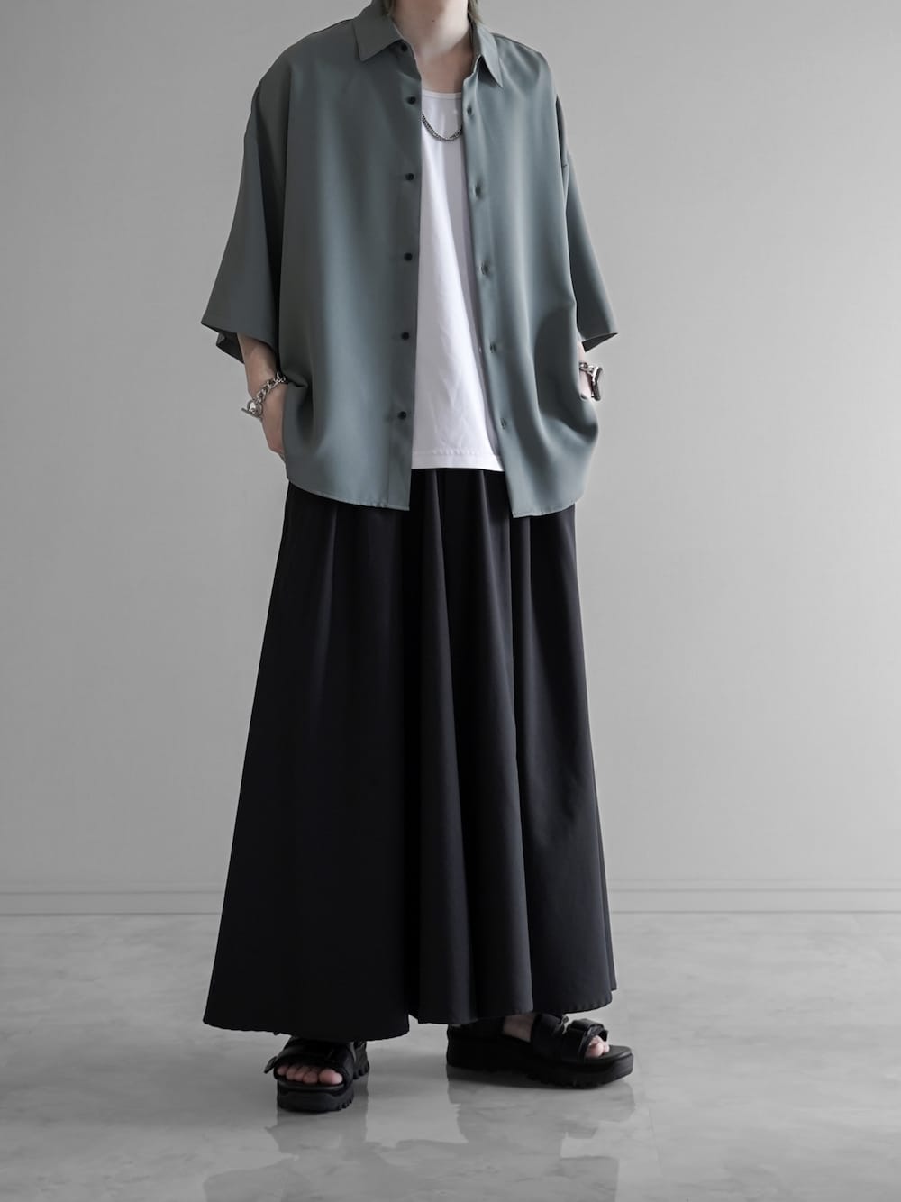 🍀⠀ ⠀ ⠀ ⠀ ライトグリーンの背面比翼シャツに 袴パンツを合わせたキレイめスタイル⠀ ⠀ ⠀ ⠀ ⠀ シャツの爽やかなライトグリーンが 蒸し暑い夏にぴったりのカラーですね◉⠀ ⠀ ⠀ ⠀ ⠀ また、袴パンツは生地量が多いですが 通気性抜群なので夏でも快適です🎐⠀ ⠀ ⠀ ⠀ ⠀ インスタ→ぴたんで検索! ⠀