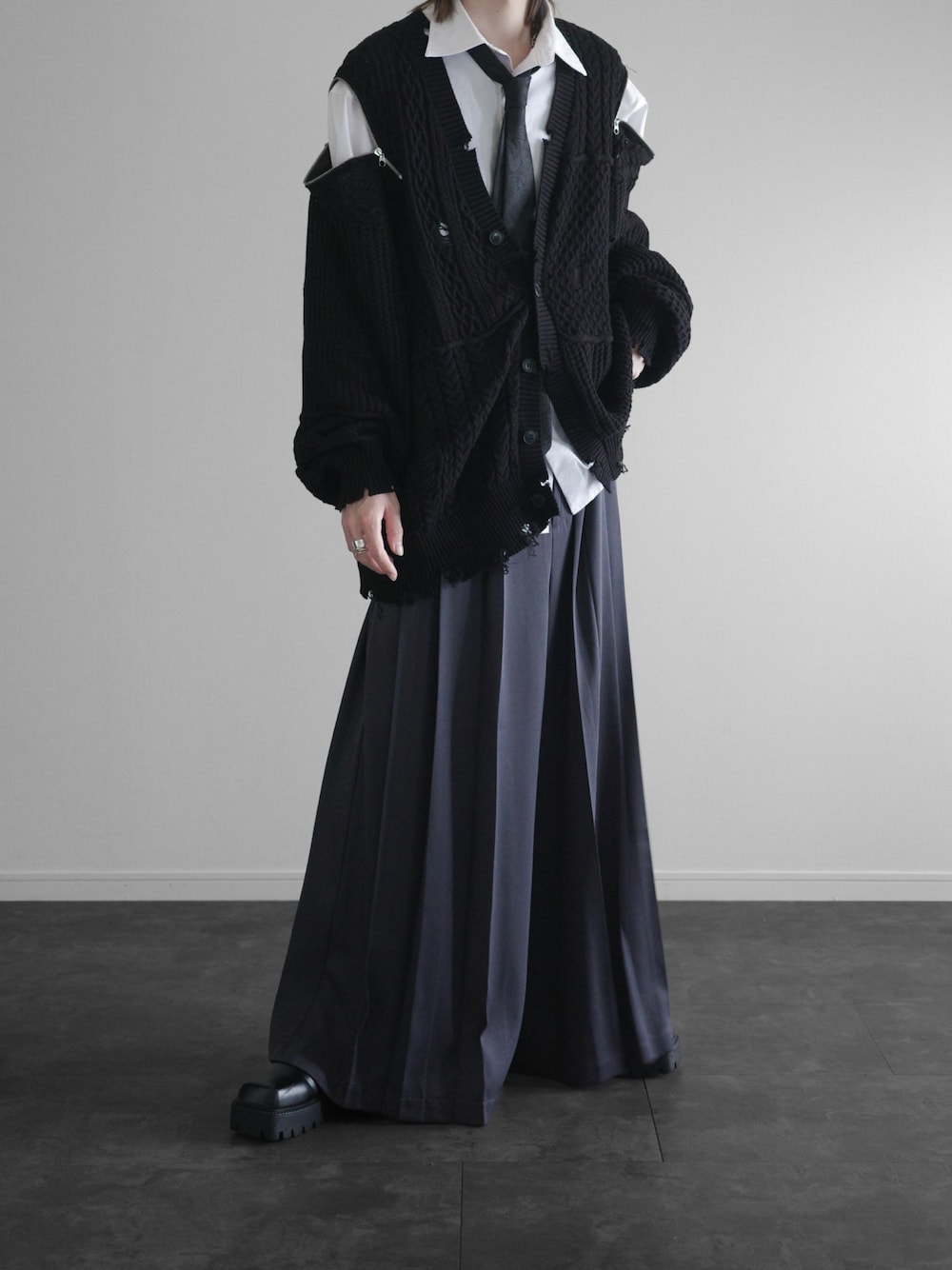モノトーンスタイル⠀ ⠀ ⠀ デザインカーディガンに白シャツ、黒ネクタイ 袴スラックスを合わせたお気に入りのモノトーンスタイル⠀ ⠀ ⠀ カーディガンや羽織りものの中にネクタイを合わせるだけで簡単にこなれ感を演出して出来るのでおすすめです◉ ⠀ ⠀ 全体的にゆるいシルエットなので シャツの第一ボタンは外して、少しラフな印象にしてみました☺️⠀ ⠀ ⠀ インスタ→ぴたんで検索!