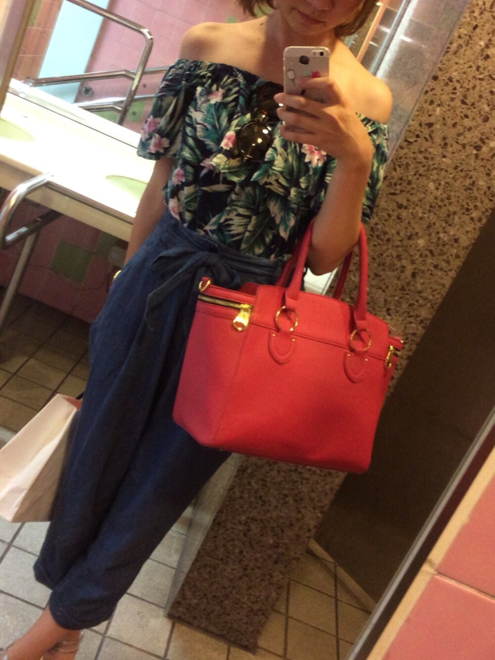 ボタニカル柄に一目惚れしたトップスは EGOISTのものです(^_^)☆ パンツ、サンダル、バッグはHeather☻ トップスにピンクが入ってたので、 バッグで色を合わせてみました。 タックパンツはほんとに楽ちん♩(笑) サングラスはアクセ感覚で(^_^)