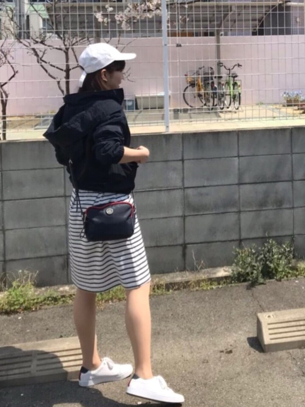 今日はスポーティに🧢👟 カジュアルになりすぎないようワンピースとトミーの新作ナイロンブルゾンを合わせて☺︎♥︎ このブルゾンは丈の長さとフードの大きさのバランスに一目惚れ🥰 まだ朝と夜は寒いからこれからの季節大活躍しそう〜♡♡