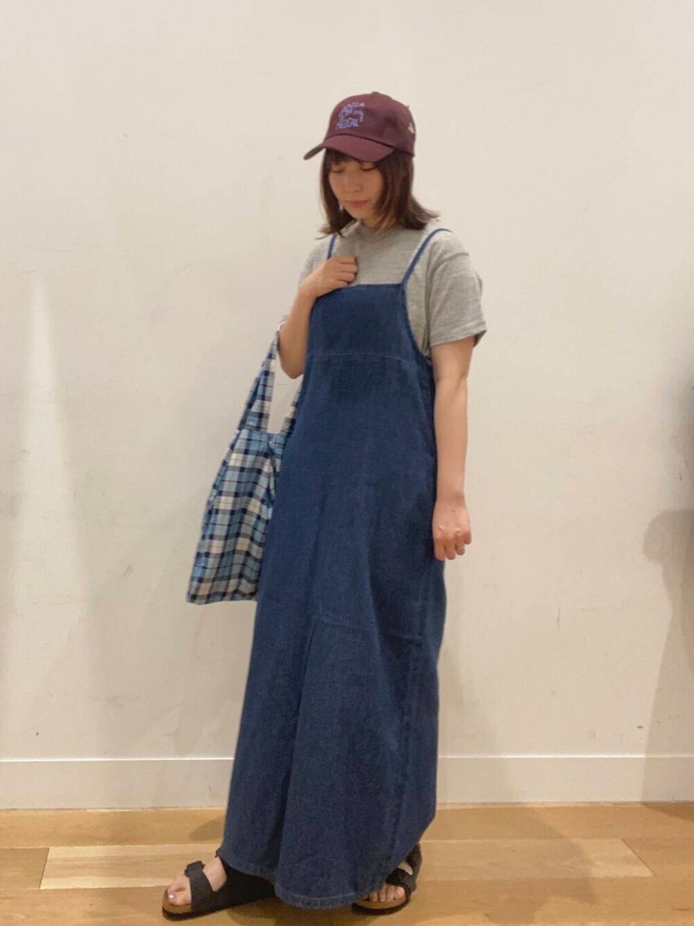 別注キャミワンピースを シンプルカジュアルに着てみました 紐で長さ調節可能で後ろ姿も可愛くなります! F&SのTシャツは着心地いいです 着回し抜群ですが、1枚で着ても◎ 小物でカラーをプラスしてカジュアル感あっぷです