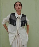 ショートニットはシャツにレイヤードすれば簡単にこなれスタイルに◎