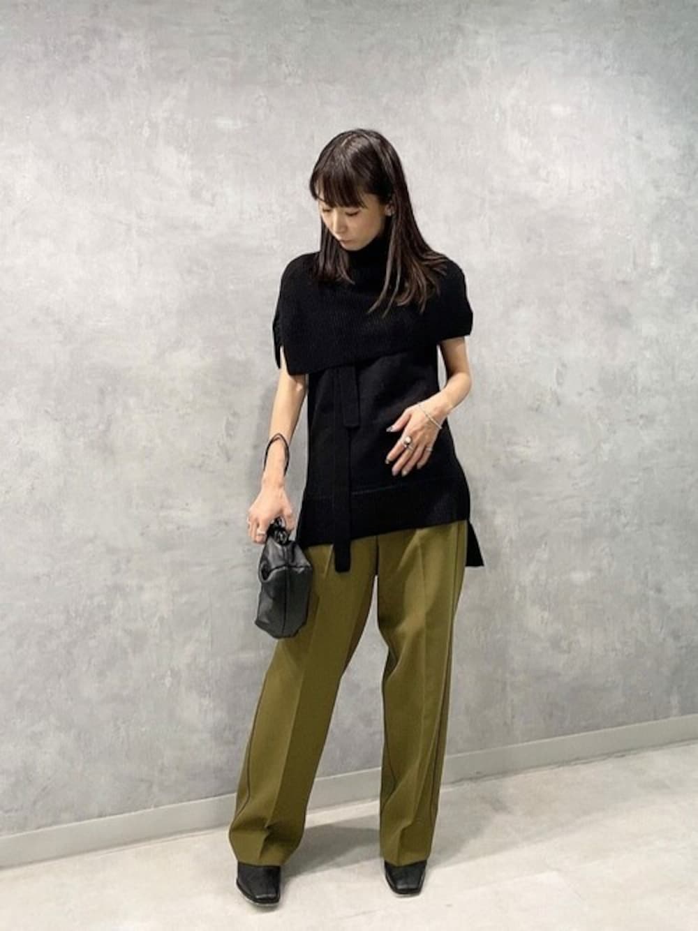 saitoのニット/セーター「ケープレイヤードワンショルニット/ウォッシャブル」を使ったコーディネート