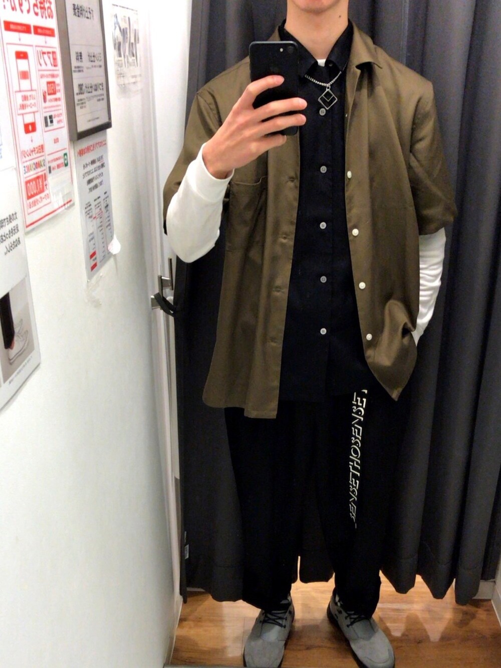 UNIQLOUオープンカラーシャツを 2枚使ってレイヤード なかなかいける ボタンを組み替えることで 違うパターンのシャツになるよ