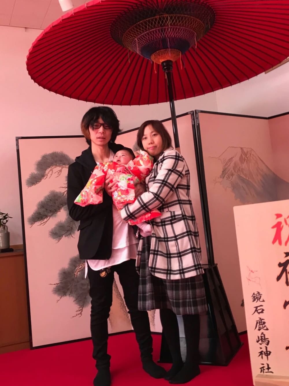 お疲れ様‼︎ 娘のお宮参りに三人で行って来たました。 結構、スーツが無かったのでこのコーデになりました。