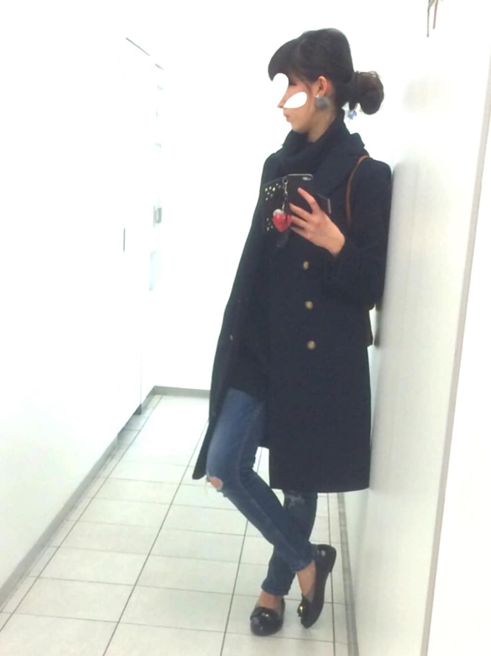 お買い物コーデ! やっぱ黒が落ち着く♡ チェスターコート福袋のだけど使えます!