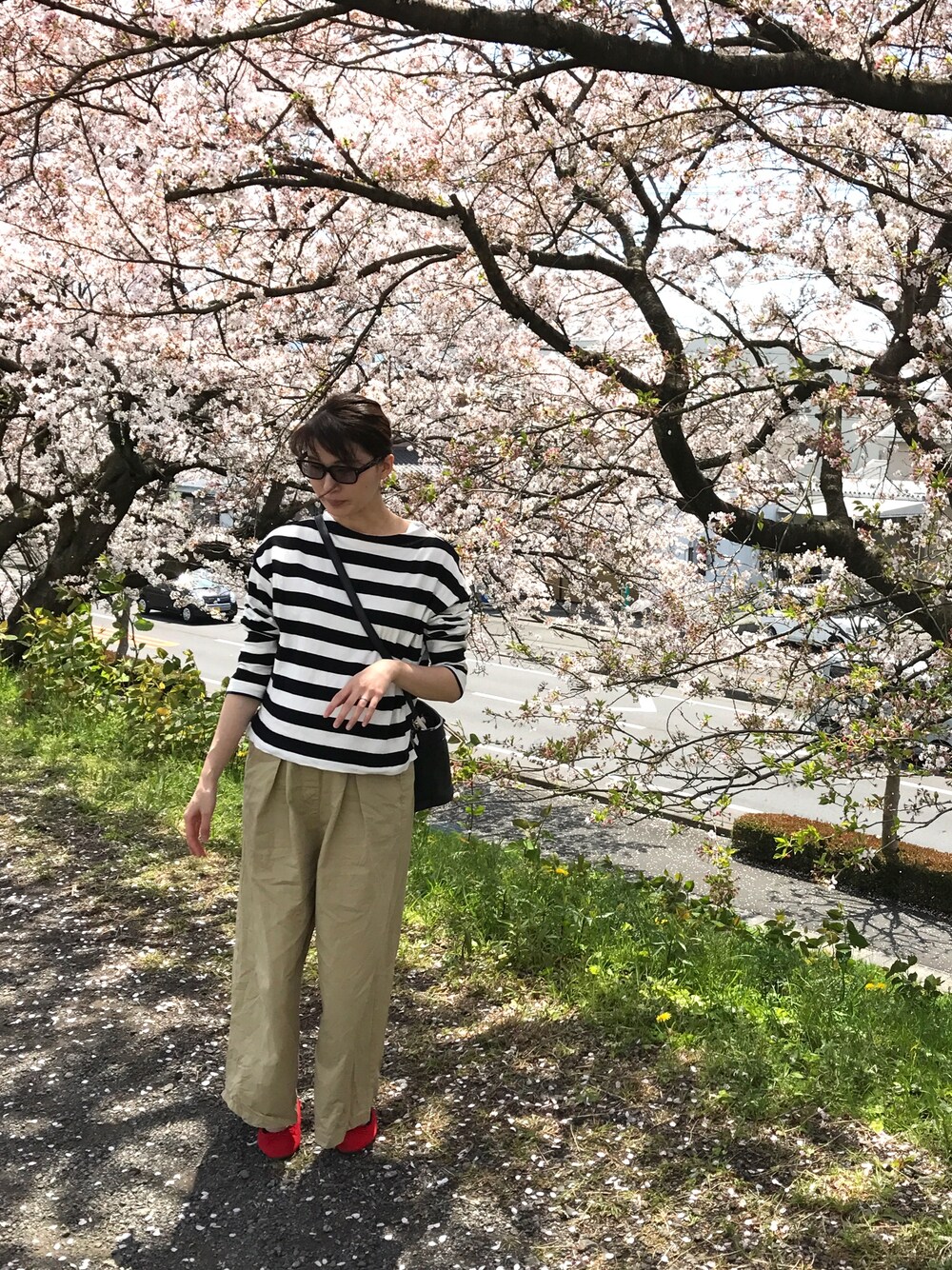 お花見🌸 サンドイッチを持って♡ 見に行けてよかったけど花粉がヒドい🤧 トップスはUNIQLOのワゴンで700円くらいでしたー‼︎ 30w6d❤︎