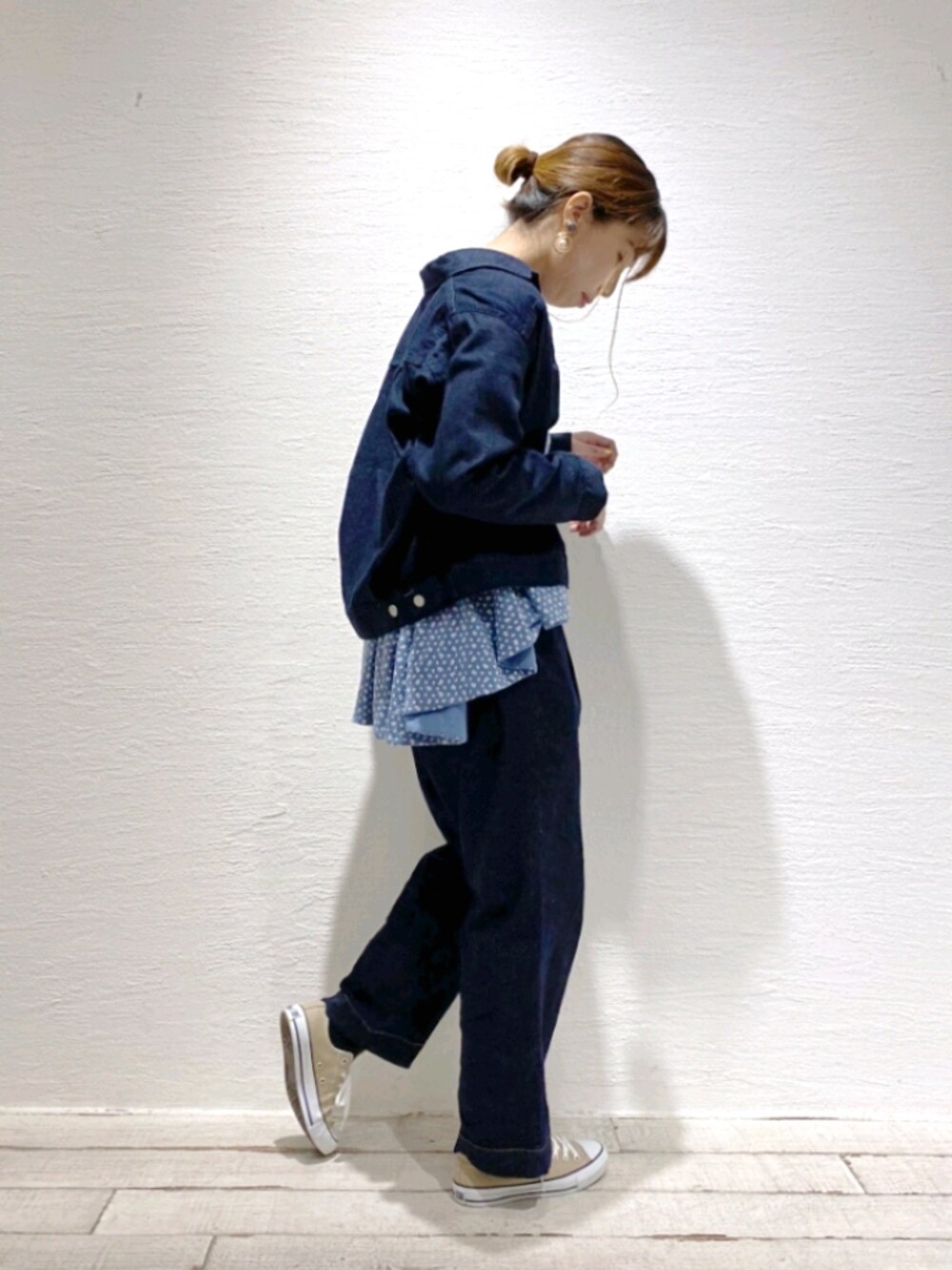 デニムのセットアップ👖 少し長めのトップスを ちょい見せしてみました◎