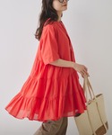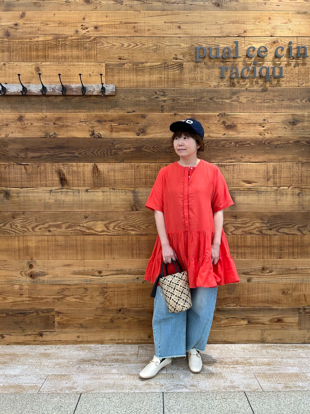 インドコットンボイルシリーズのティアードブラウス♡ トマトの様なオレンジ色が可愛い! 生地はサラサラしていて着心地抜群! 真夏に着たい1枚!