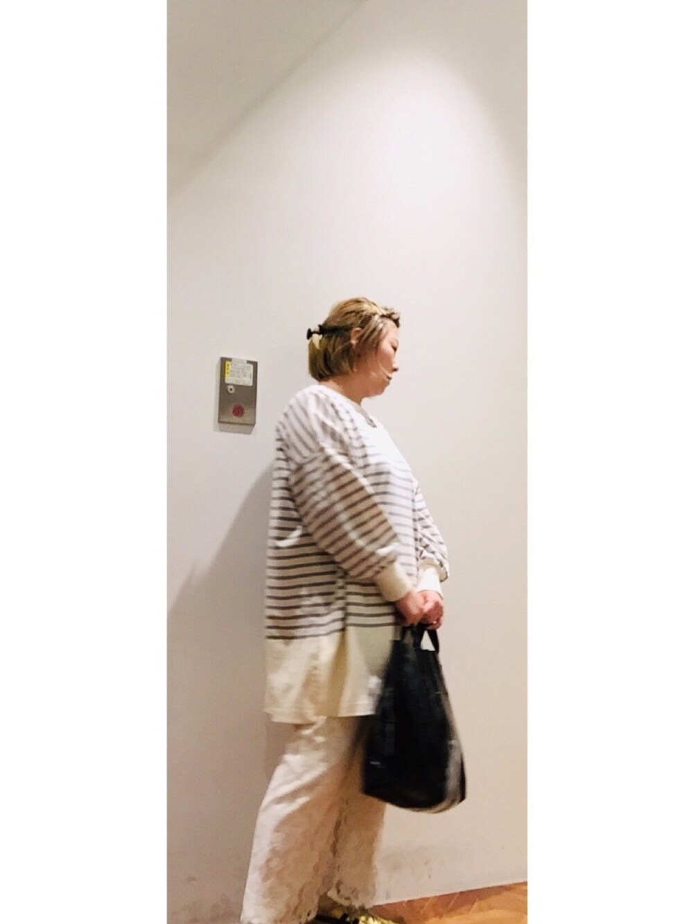 シンプルコーデ パネルボーダーにレースパンツ シンプルだけど… ちょっと可愛さを