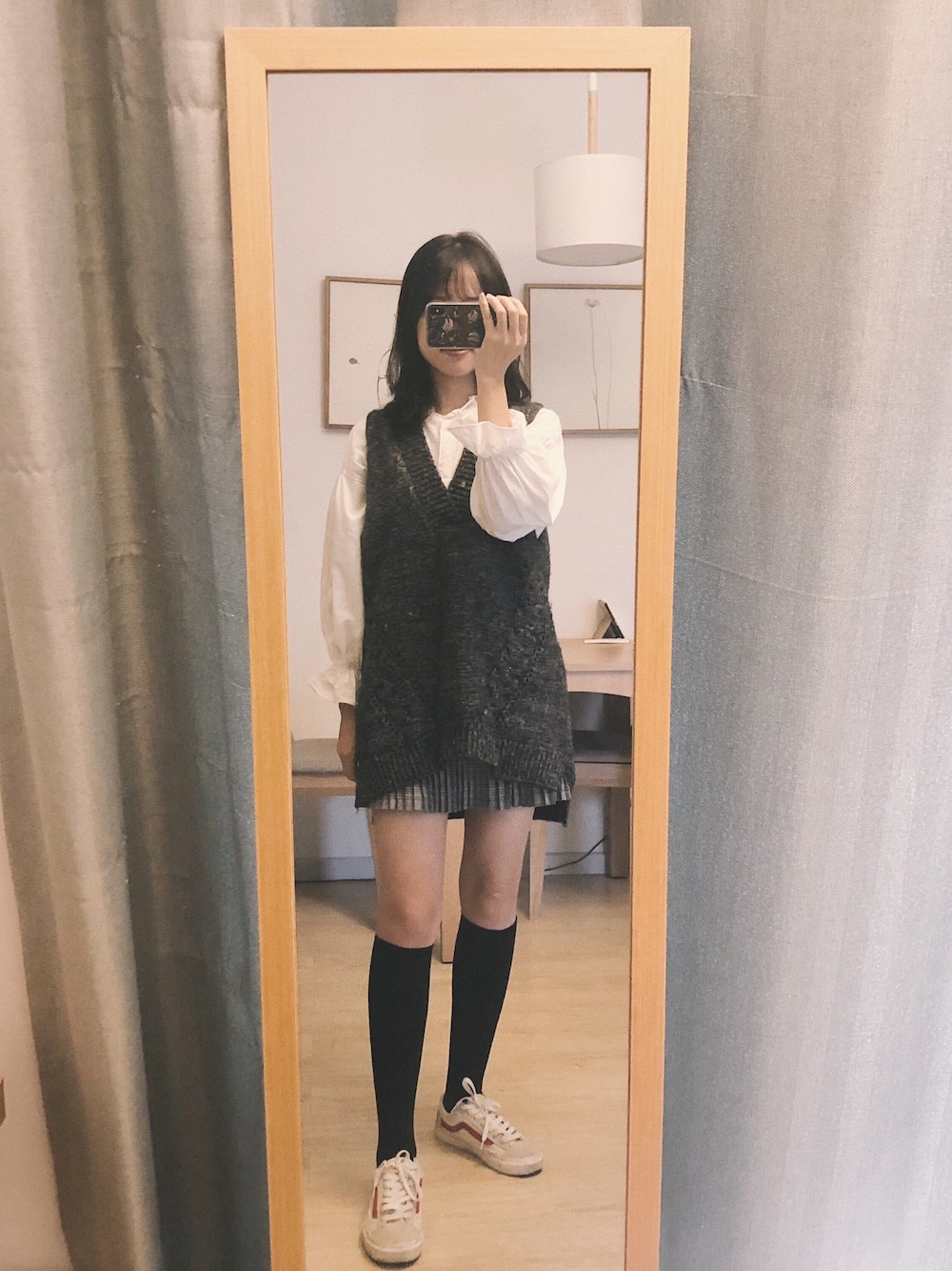 娃娃领衬衣➕马甲百褶裙 显得很乖巧😋