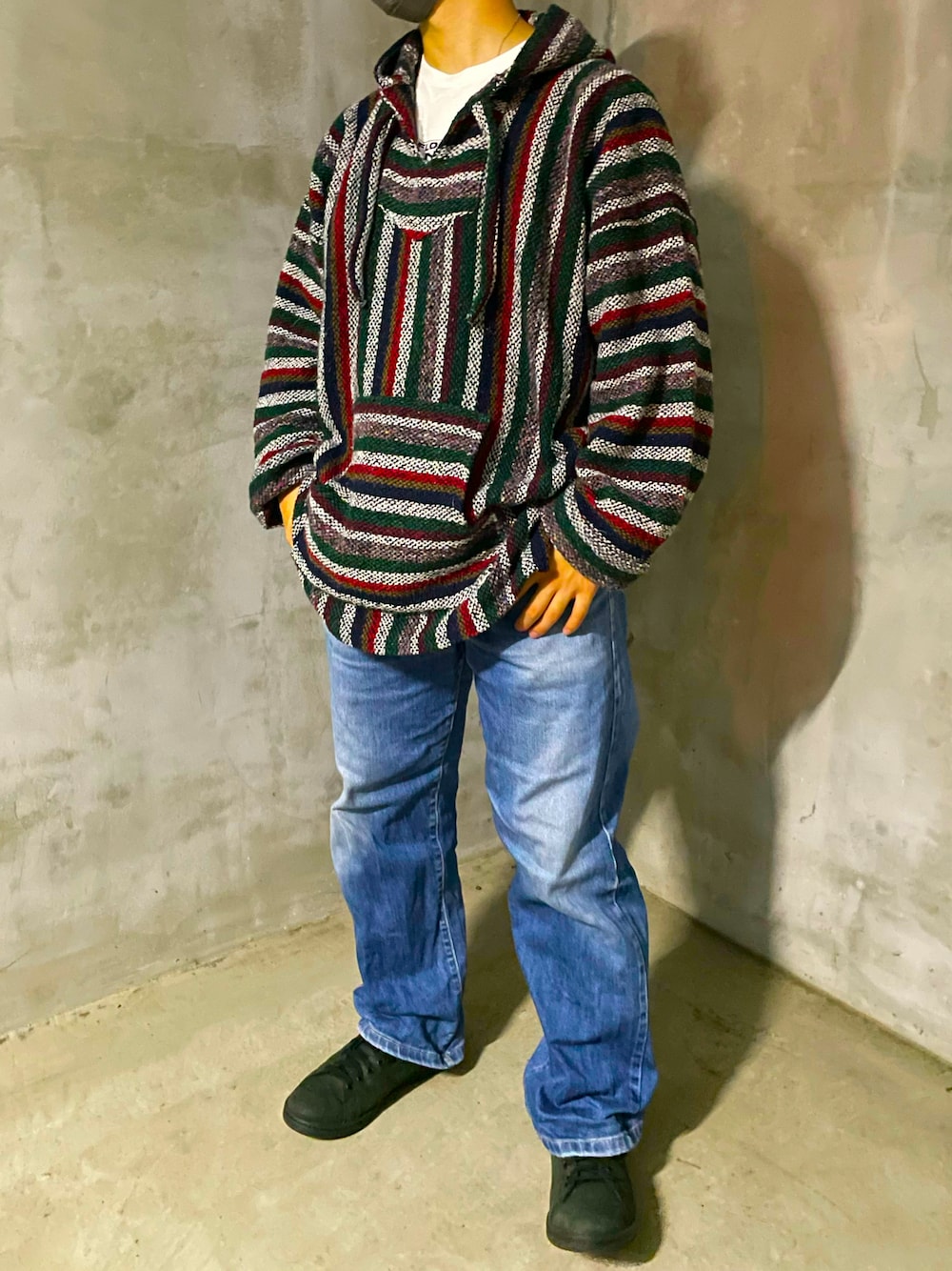 メキシカンパーカーを使ったコーデ。 デニムを合わせるのは王道ですね。 肌寒くなってきた今の季節にぴったりです。