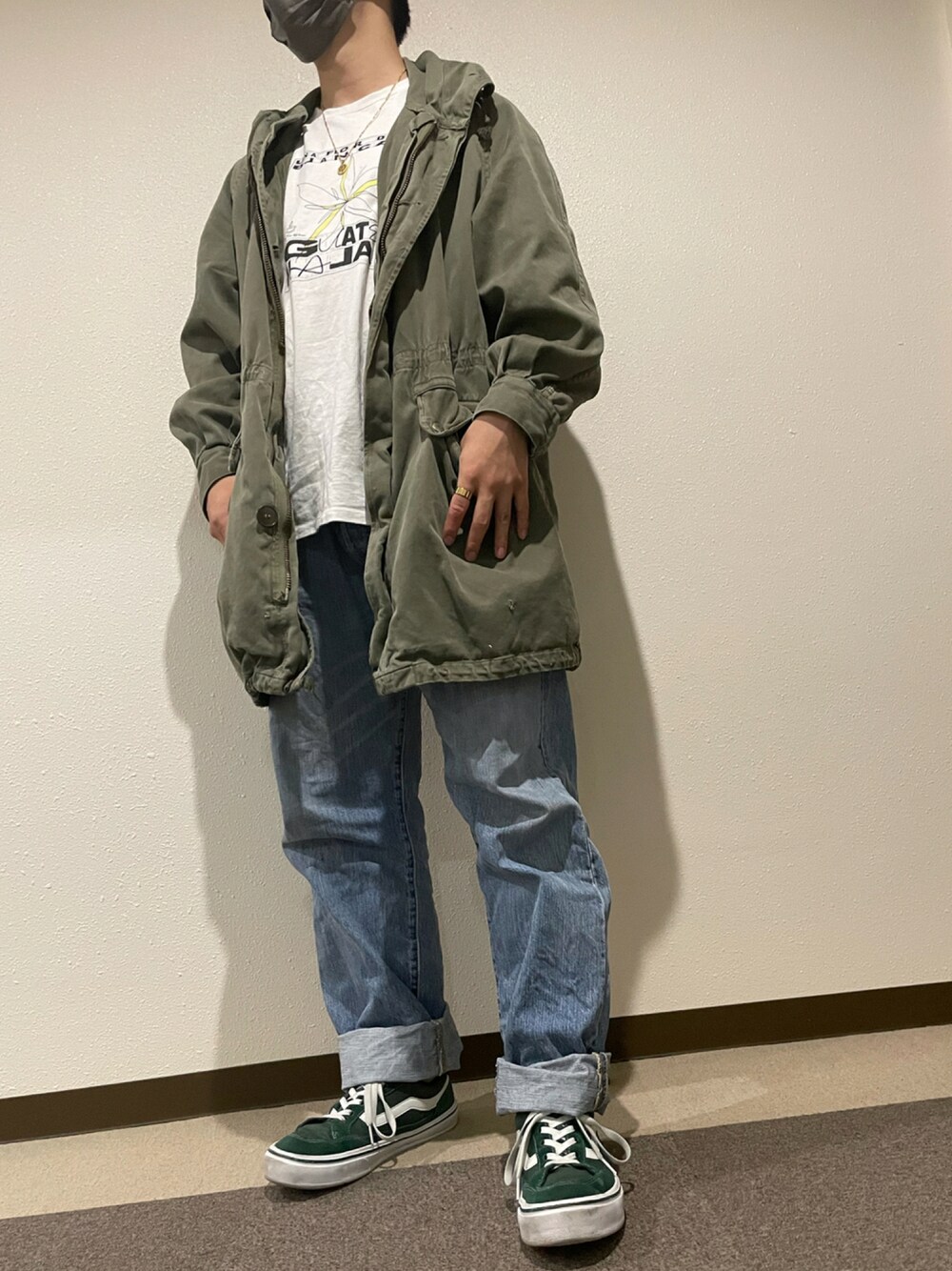 モッズコート着たくて、ラフに組んだコーデ。 スニーカーはFALKENです。軽くて歩きやすいですよ!