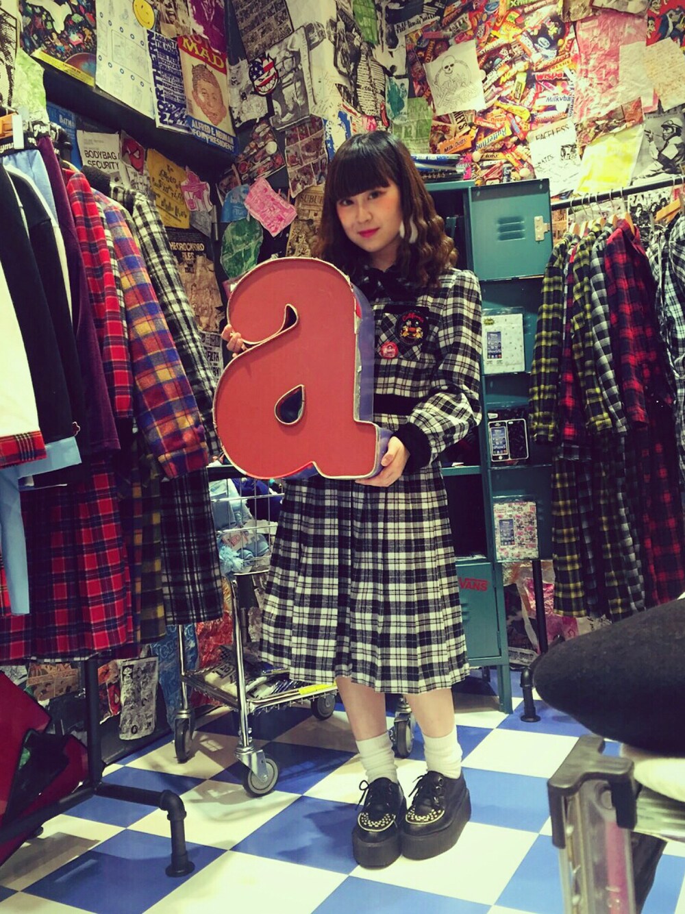 Aymmyのワンピースは珍しく黒チェックにしました!!なんだか新鮮!(笑)Aymmyのお店でシャし撮ってもらいました😂💓