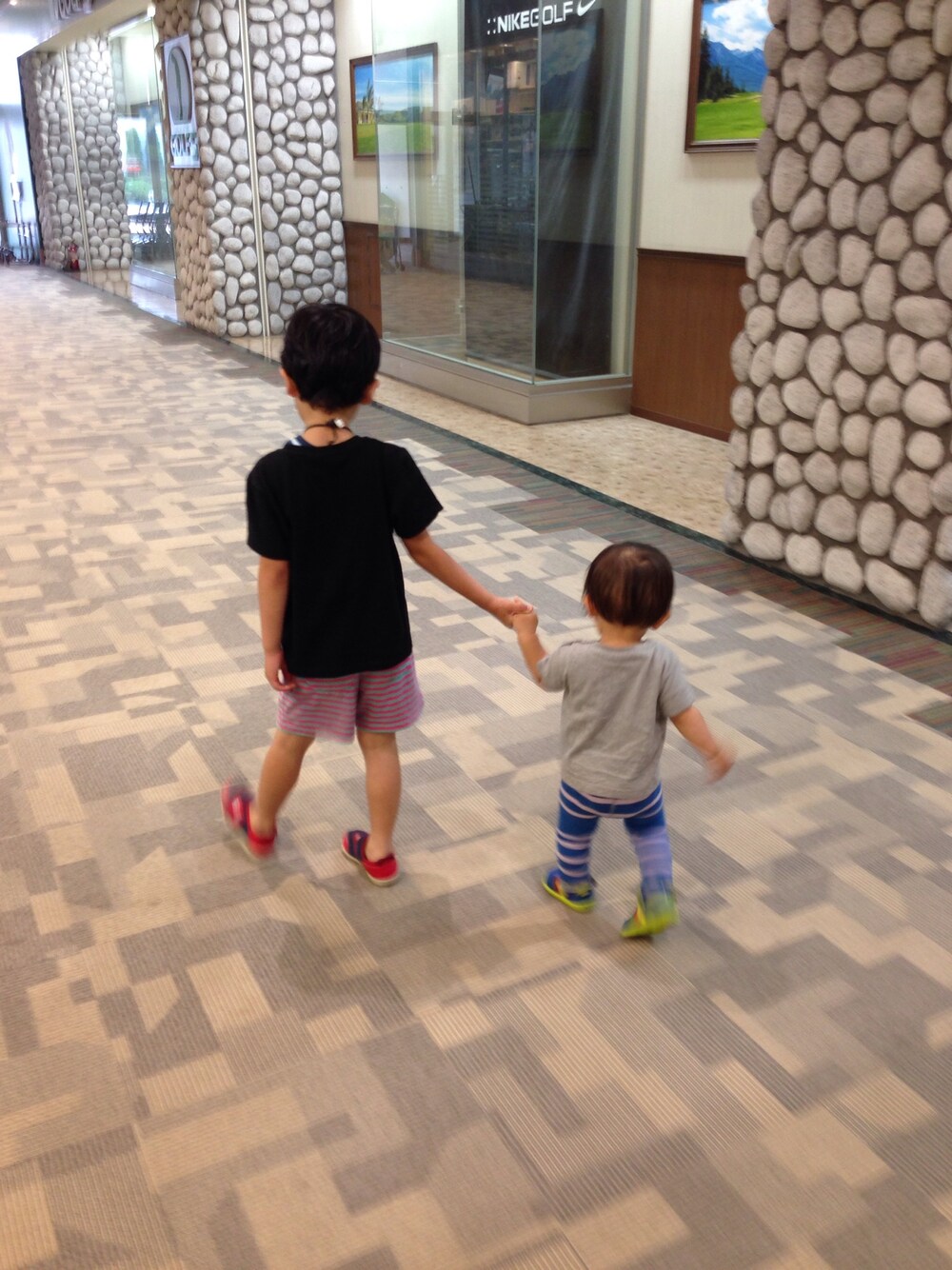 後ろ姿ですが。。 密かに2人ともイロチのTシャツです。