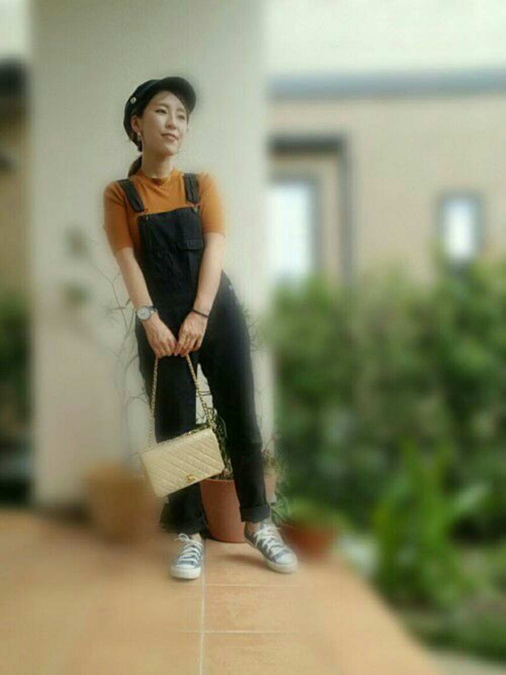 テラコッタのリブTと ネイビーのコンバース着まわし♡ どっちも使いやすくて優秀さん♡