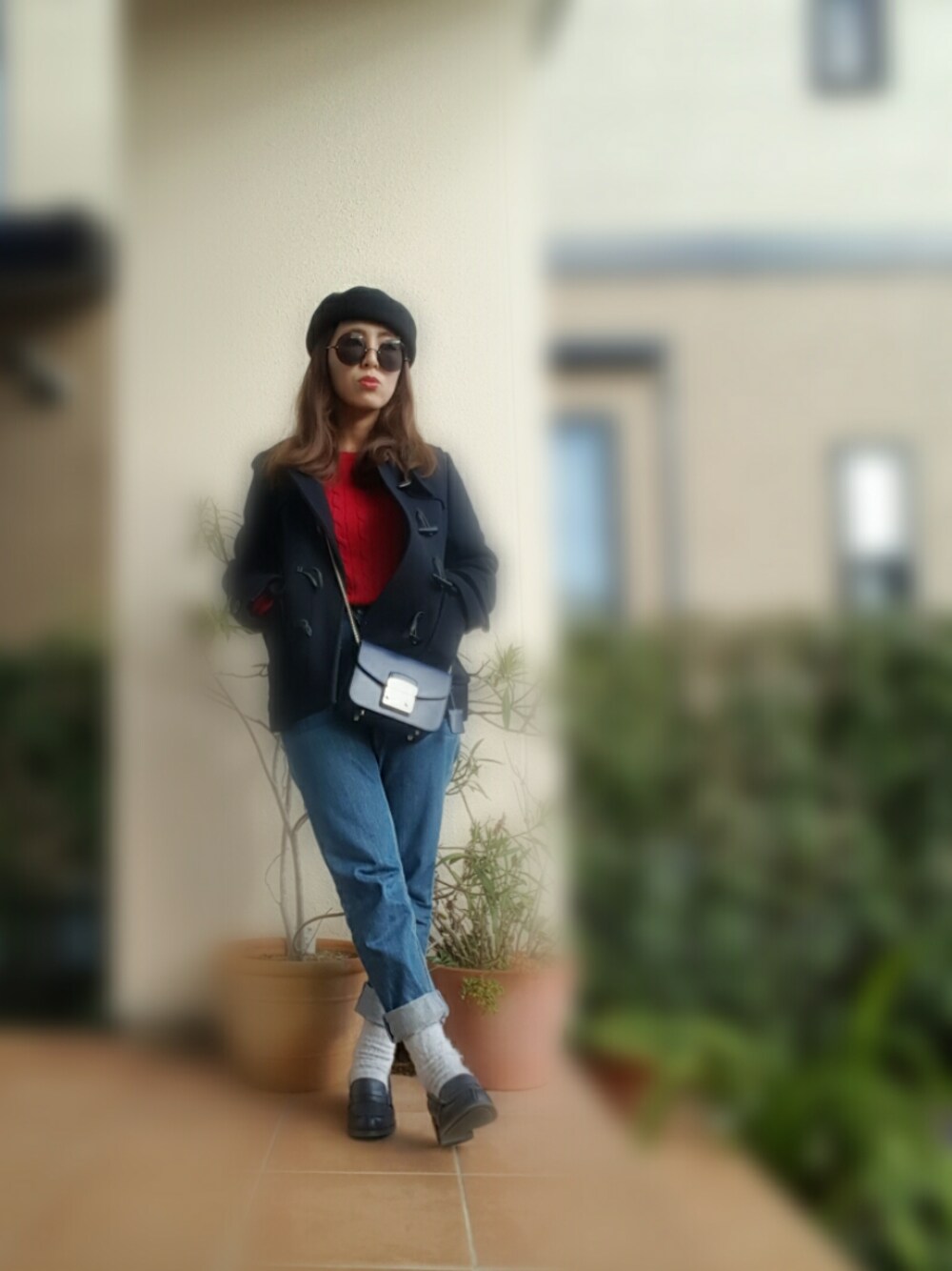 赤ニット×ネイビーダッフル❤