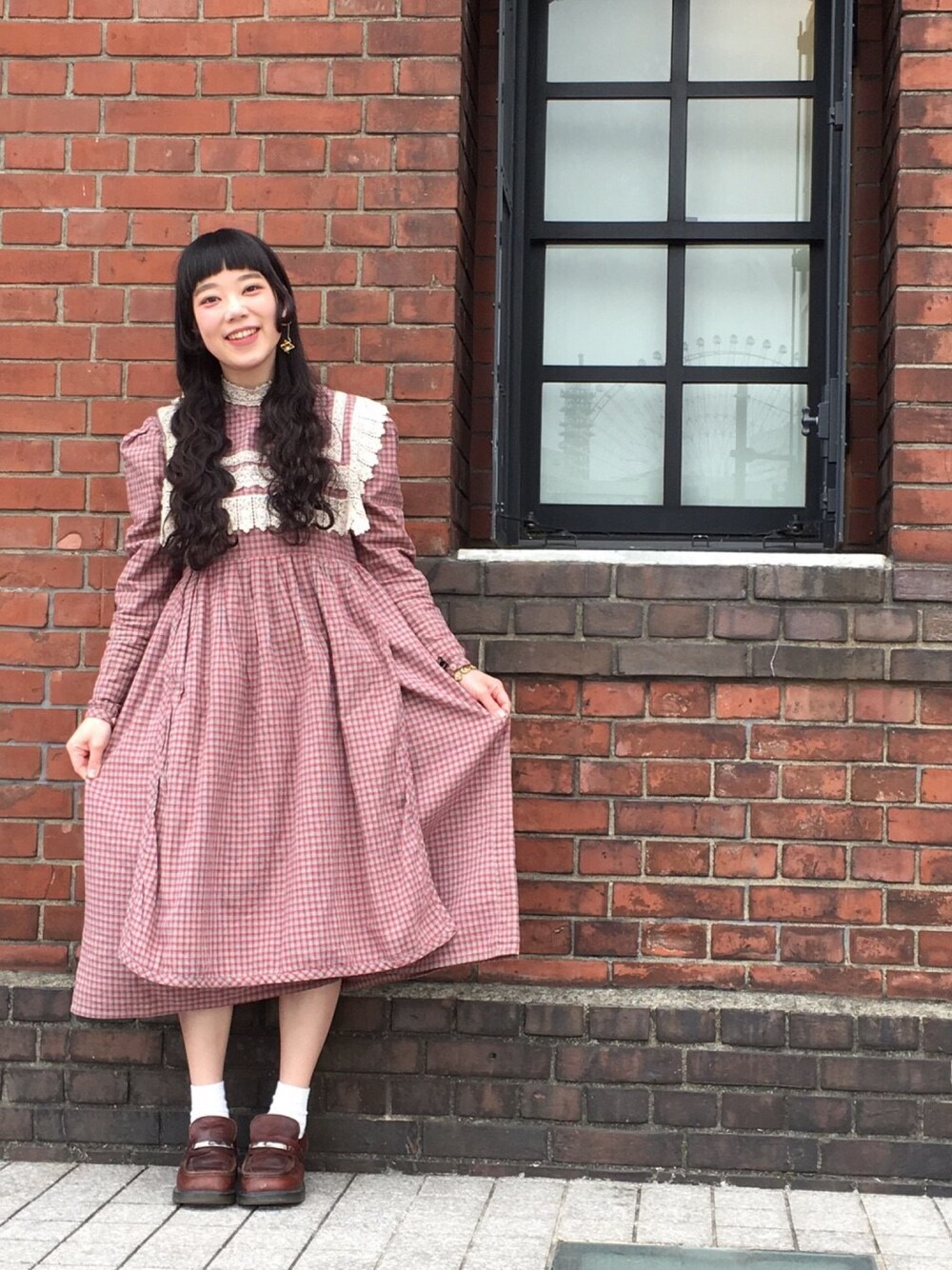 backnumberのライブで横浜きました☆ 前泊したときの一枚(* ̄ω ̄)ノ お気に入りの古着のワンピース…ボタンもともとなかったり、何個も取れたりしてボタン縫い付けまくってます(笑)