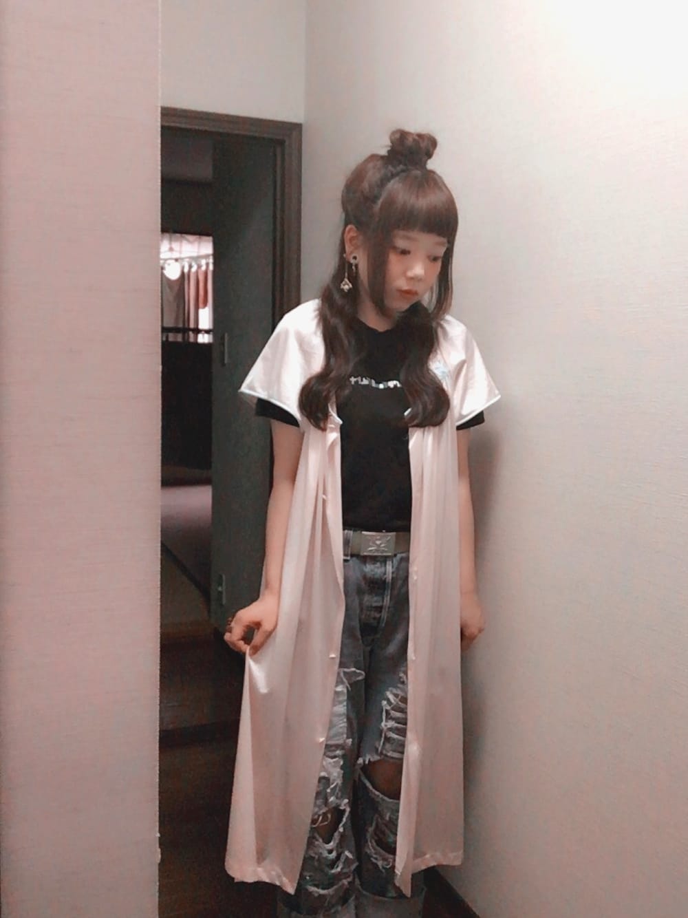 お気に入りでヘビロテのダメージデニムとbacknumberのoneroom party2のTシャツにランジェリーガウン?テロテロのお気に入りを羽織りました\(^o^)/靴脱いじゃったけど、貰ったばかりの白サンダル✨サイズ大きめだけど、これからもたくさん履くよ(* ̄ω ̄)ノ 最近は毎日、甲鉄城のカバネリをひたすら見返すのが日課です*\(^o^)/*
