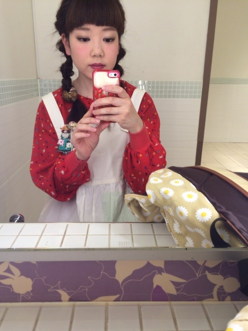 写真撮ってもらうの忘れたので、化粧室にて(笑) こないだ買った古着のブラウスとお気に入りのワンピースに蛾のような蝶のヘアゴムでおさげもどき((*゚∀゚)) 後輩ちゃんにハイジ!って言われて嬉しかったのはここだけの話(*´艸`*)