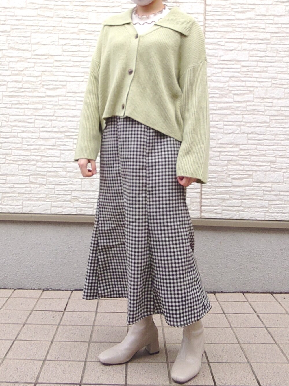 ご覧いただきありがとうございます! チョコミントカラーのマーメイドスカートの着回しコーディネートです。 インナーやショートブーツがホワイト系なので、春っぽい明るい印象になったのではないでしょうか♪